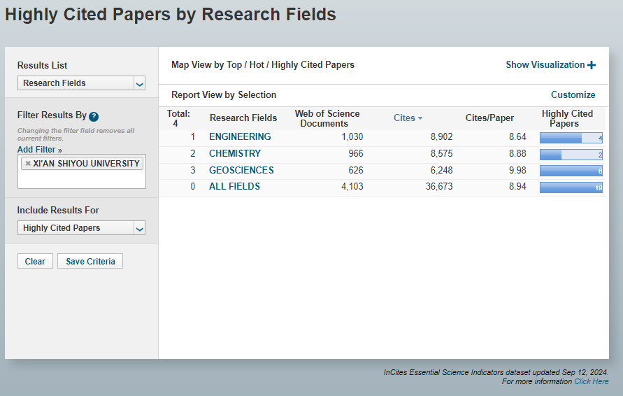 科睿唯安2024年9月公布的《基本科学指标数据库》(Essential Science Indicators,简称ESI)最新统计数据显示,beat365地球科学学科进入ESI全球排名前1%,实现重要突破。至此,beat365已有工程学、化学、地球科学3个学科进入ESI全球排名前1%。