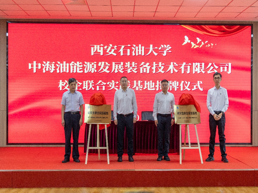 在中海油能源发展装备技术有限公司、管道工程技术有限公司走访期间杨战社、张骁勇参加了研究生联合实践基地签约和揭牌仪式。