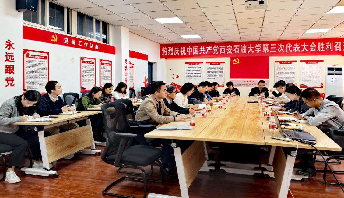 10月18日下午,副校长赵健在雁塔校区华油能源楼905会议室参加电子工程学院党委理论学习中心组(扩大)学习会,对学习开展进行现场指导。