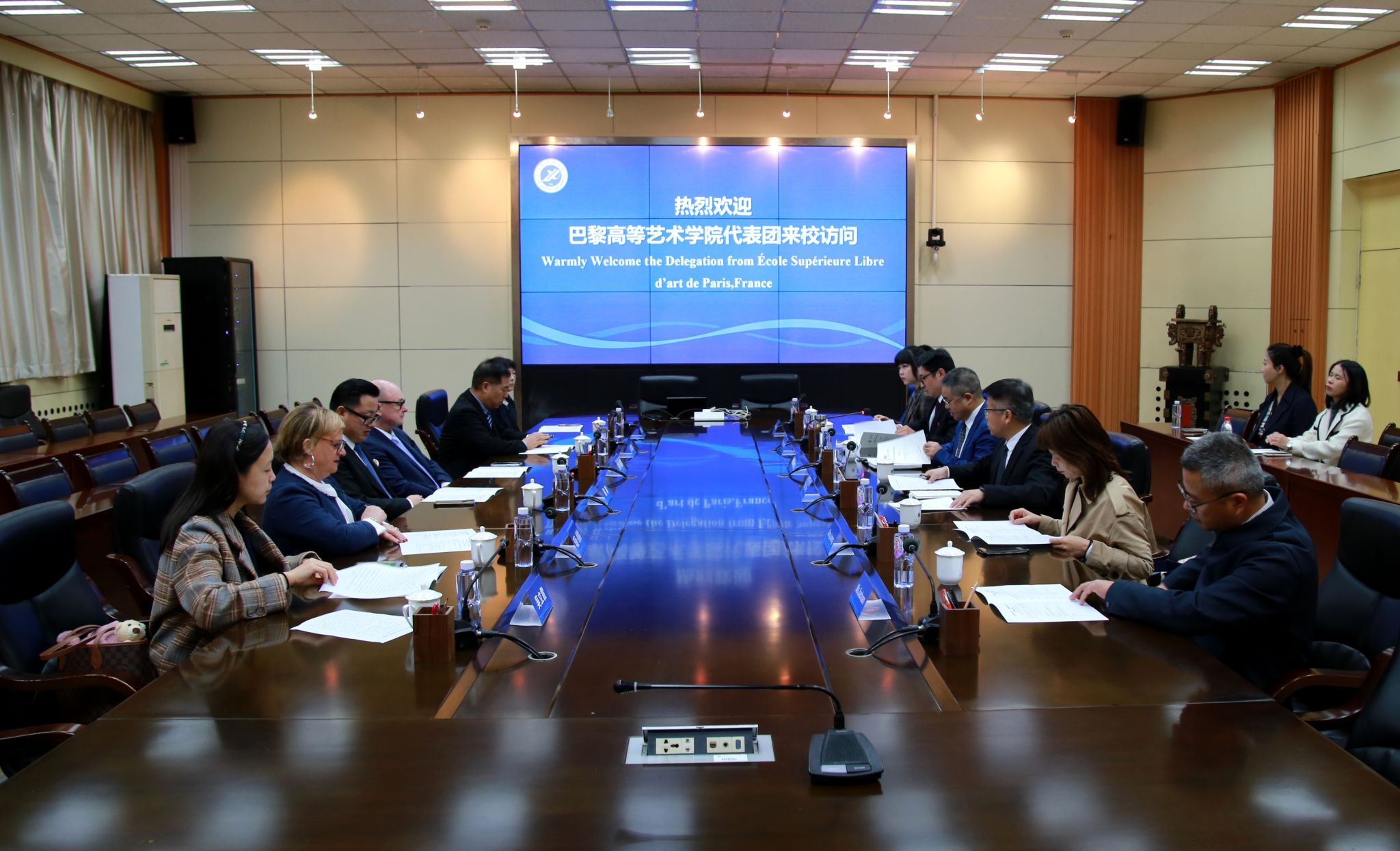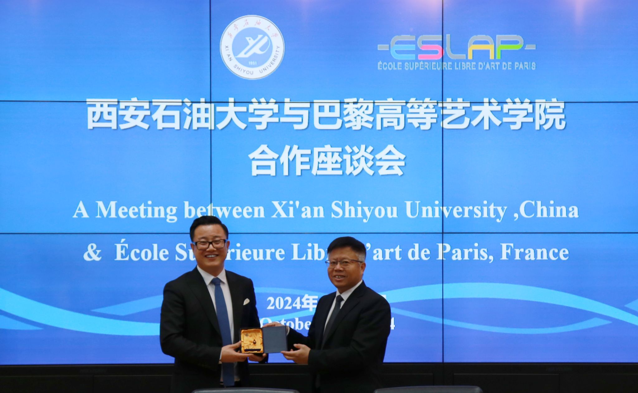 10月23日上午,法国巴黎高等艺术学院副校长CANG YUAN(藏渊)、学术委员会总顾问方所·吉博(GilbertFrancois)、国际合作中心国际关系总顾问玛丽·皮埃尔(Marie Pierre)等一行来校访问,两校合作座谈会在雁塔校区会议中心第二会议室进行,副校长张骁勇出席座谈会并致辞。