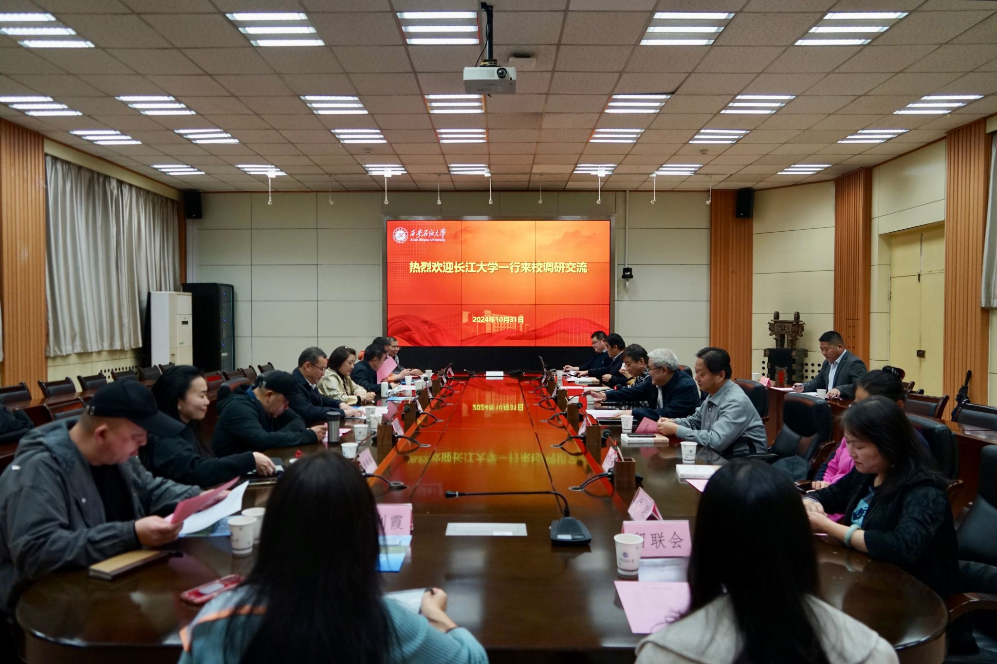 10月31日下午,长江大学党委统战部常务副部长王勇带队,长江大学党委统战部及各民主党派、统战团体负责人一行9人,来beat365调研交流,在雁塔校区会议中心第二会议室举办调研交流座谈会。会前,校党委副书记张木会见了王勇一行,并就加强党外知识分子思想政治引领、民主党派基层组织建设等工作进行了交流。学校各民主党派、无党派人士、侨联、知联会、留联会负责人参加座谈会。