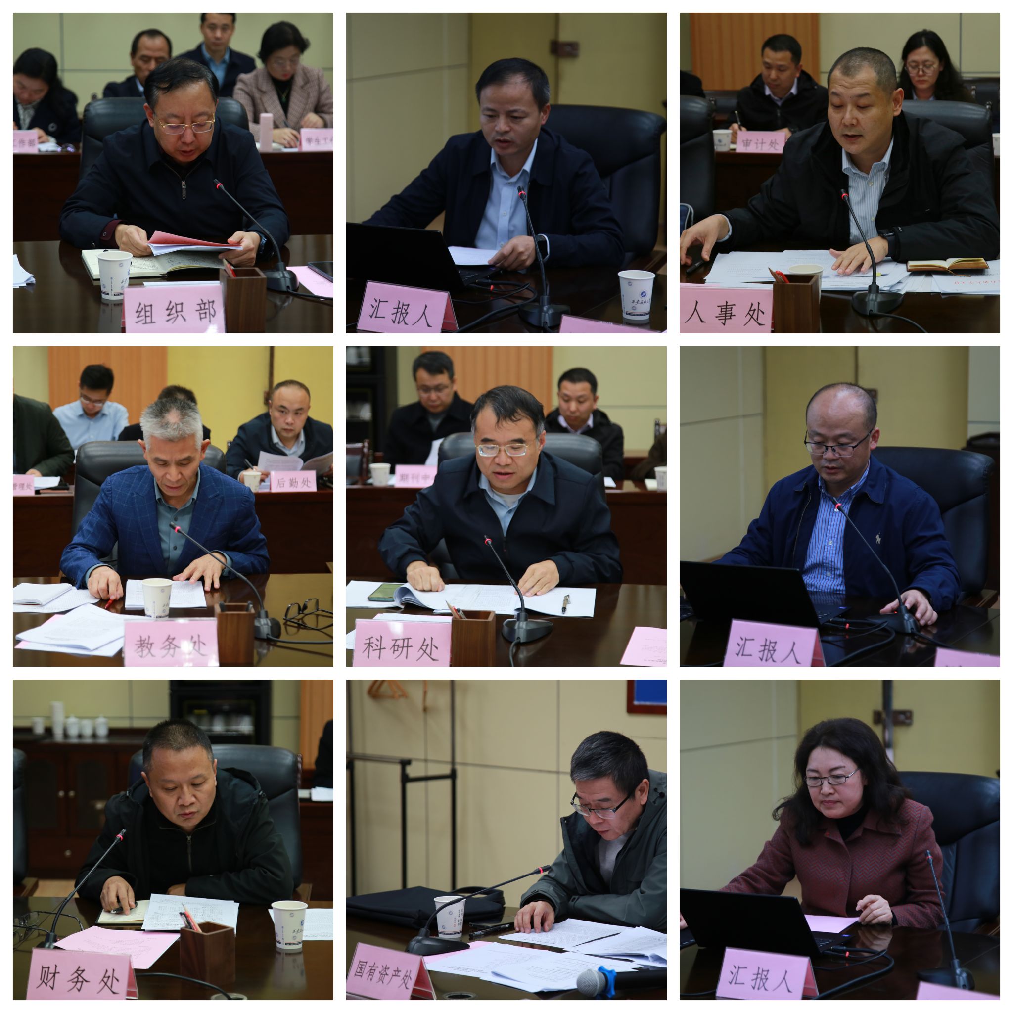 党委办公室(校长办公室)、组织部、宣传部、学生工作部、教师工作部、发展规划处、人事处、教务处、实验室管理处、科研处、研究生院、研究生工作部、信息化建设与管理处、财务处、审计处、国有资产处、后勤处、图书馆、期刊中心等单位主要负责人参加会议。