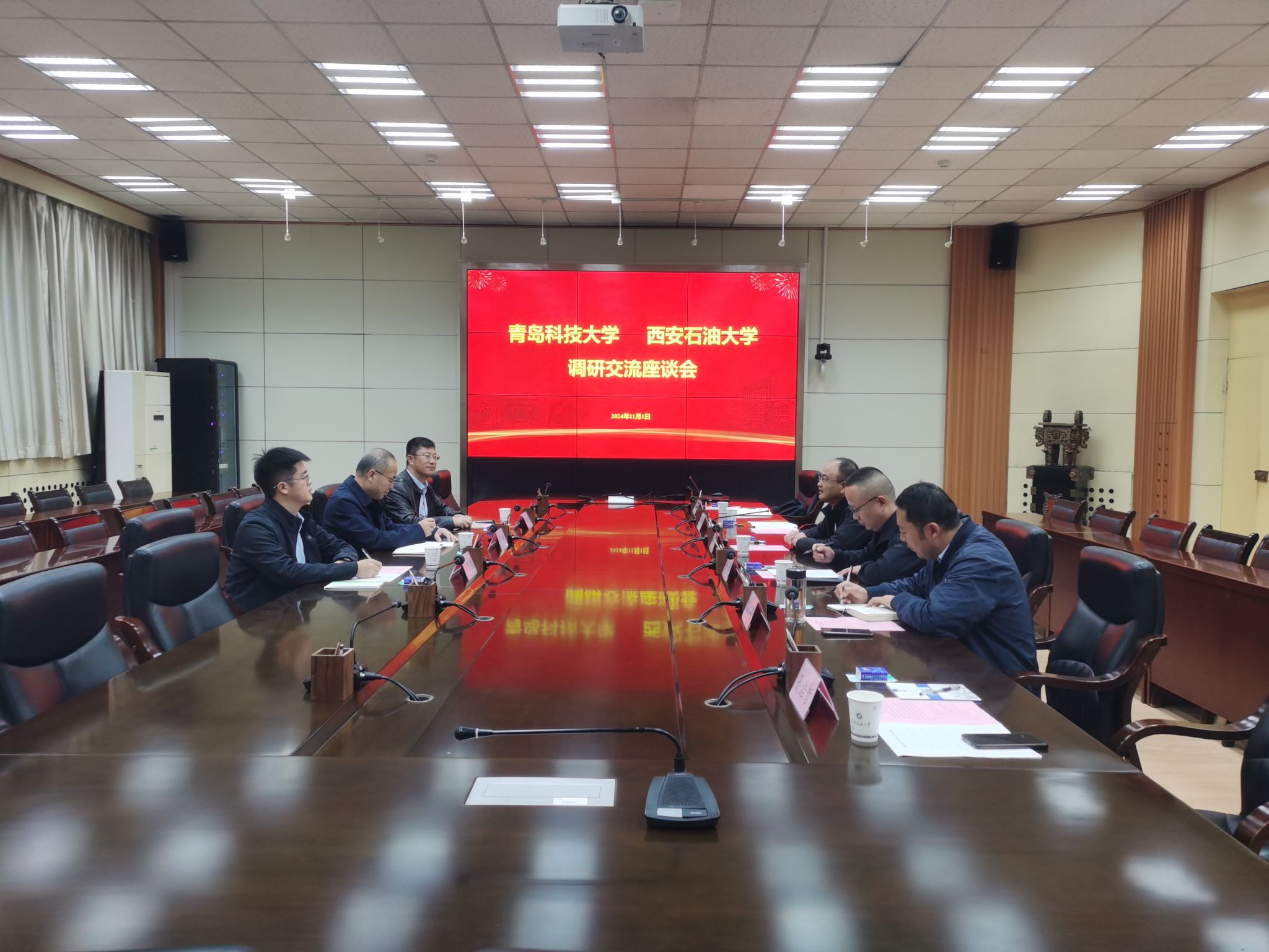 11月1日下午,青岛科技大学副校长丁林一行来beat365调研交流,座谈会在雁塔校区第二会议室举行,beat365副校长赵健出席座谈会。