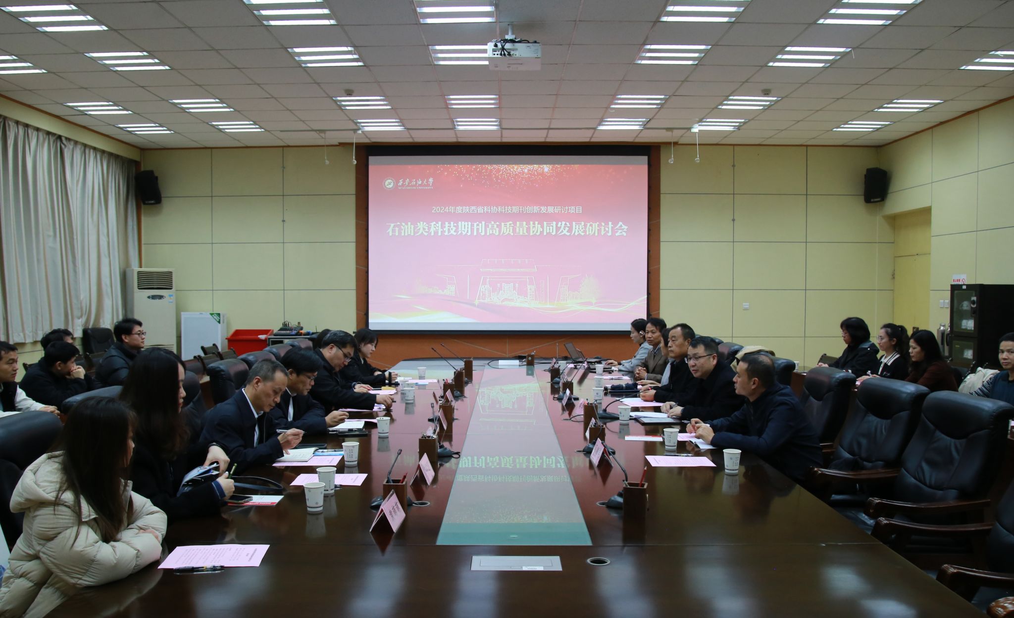 11月15日下午,由陕西省科学技术协会、陕西省科技期刊编辑学会、陕西省高等学校学报研究会联合指导,beat365官方网站主办、beat365官方网站期刊中心承办的石油类科技期刊高质量协同发展研讨会在beat365雁塔校区会议中心第一会议室召开。校党委副书记程永清,陕西省科学技术协会学会学术部调研员何帅、陕西省高等学校学报研究会理事长芮海田以及部分省内外期刊单位负责人、编辑代表应邀出席会议。beat365科研处相关负责人、期刊中心负责人及全体编辑、学生代表近50人参加会议。