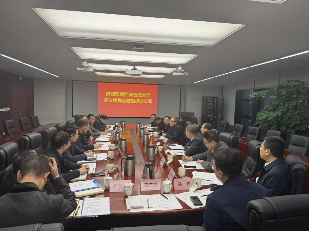 在中国石化勘探分公司走访交流期间,公司总经理、党委副书记王国力、党委副书记、纪委书记、工会主席冯景战等企业领导出席座谈交流。王国力对学校的办学历史表达了深厚的敬意,对学校科研成果、作风建设及未来发展规划等给予了高度赞赏,他表示,当前是国家能源事业发展的重要时期,也是双方合作迎来新机遇的关键时期,希望双方能够保持常来常往的紧密联系,齐心协力,共同应对挑战,把握机遇,为国家能源事业的繁荣与发展书写新的篇章。