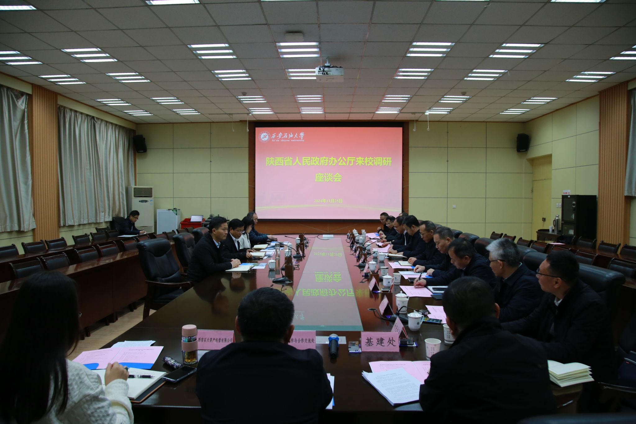 11月25日上午,陕西省人民政府办公厅副主任张玉民一行4人来beat365调研。校党委书记常江会见了调研组一行,校长王进富,副校长张君涛出席调研座谈会,座谈会由副校长赵健主持。