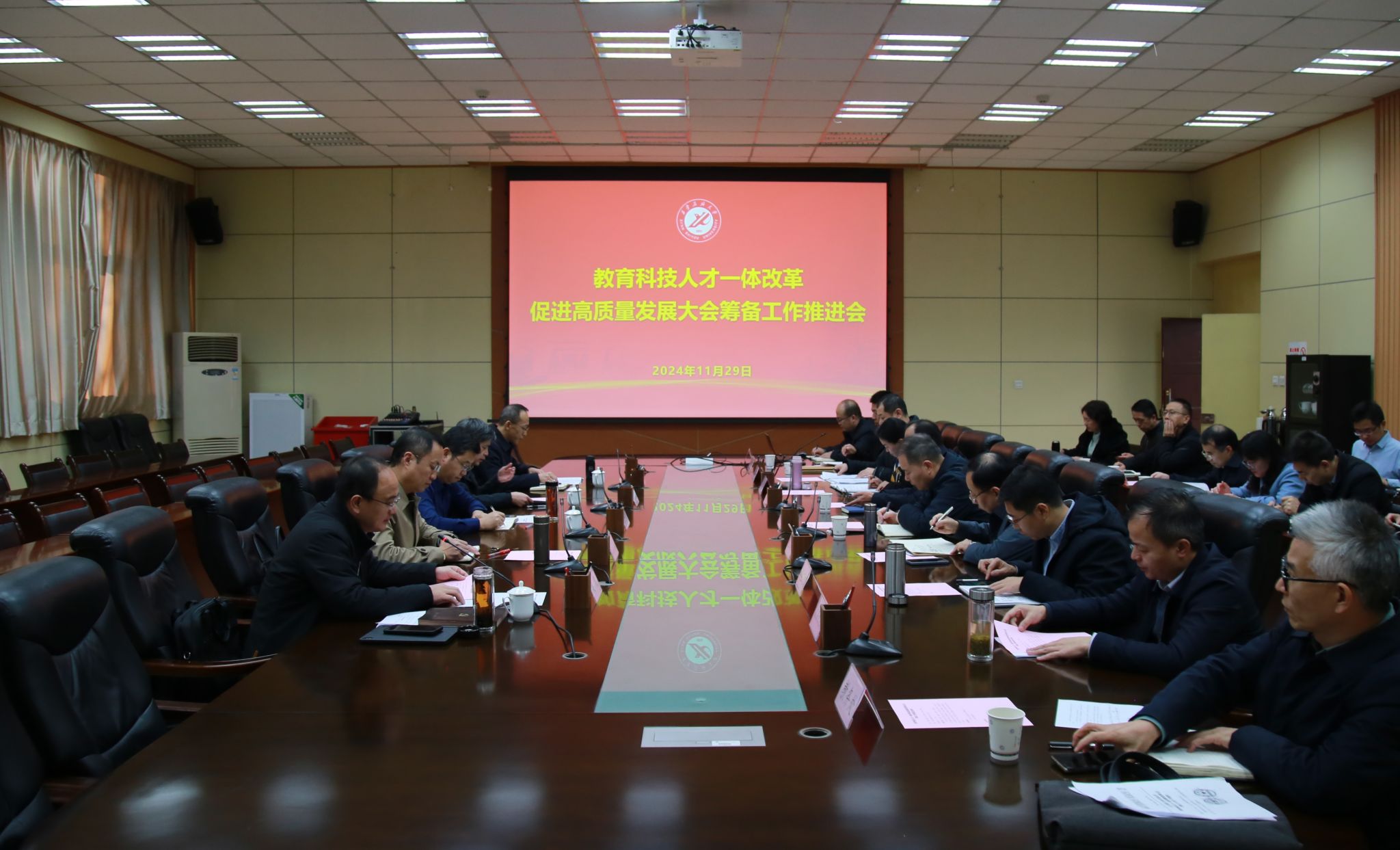 党委办公室(校长办公室)、组织部、宣传部、学生工作部、教师工作部、发展规划处、人事处、教务处、实验室管理处、科研处、研究生院、研究生工作部、信息化建设与管理处、财务处、审计处、国有资产处、后勤处、图书馆、期刊中心等单位负责人参加会议。