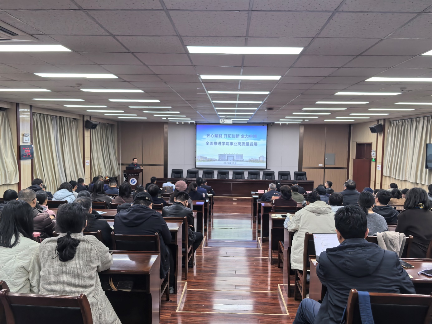 电子工程学院院长李飞围绕电子工程学院2024-2027年高质量发展思路对全体教职工进行宣讲。他从学院基本情况、师资力量、学生培养、学科专业、科学研究等方面全面介绍了学院发展目前的现状和困境,就如何破局提出了新的发展思路、发展定位、发展目标和具体措施。