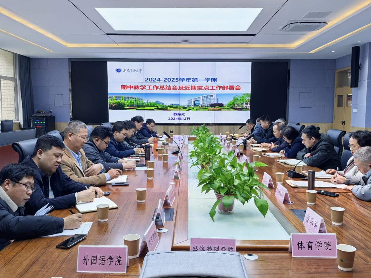 12月2日下午,学校在鄠邑校区博览楼A116室召开2024年秋季学期期中教学工作总结及近期重点工作部署会,副校长张君涛出席会议,教务处、学生工作部、团委、实验室管理处、高教研究与评估督导中心相关负责人,各院(系)主管教学院长(主任)、教学管理办公室主任参加会议。