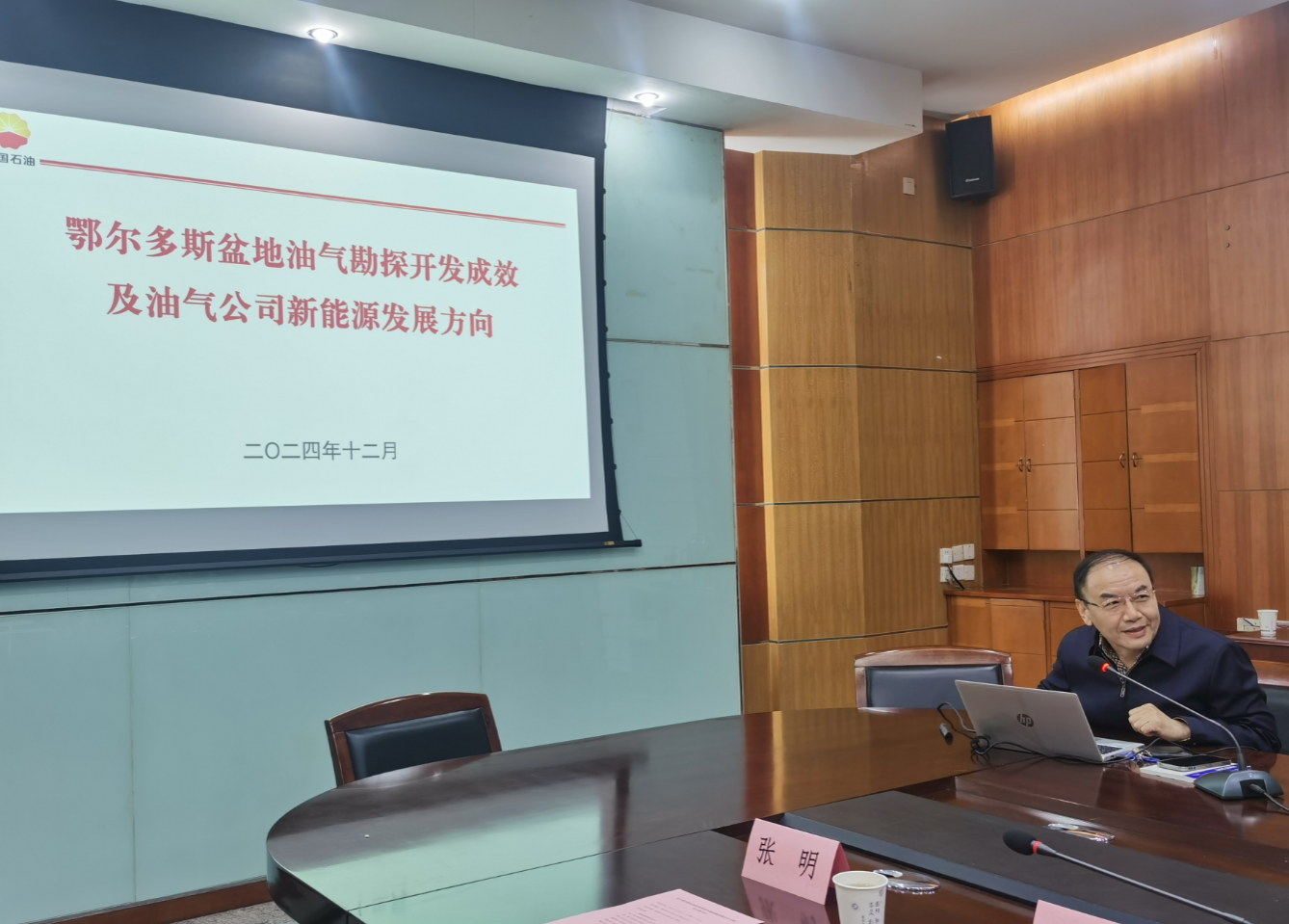 聘任仪式结束后,席胜利为与会青年教师作了题为“鄂尔多斯盆地油气勘探开发成效及油气公司新能源发展方向”的专题报告,他结合自身的油气田工作经历分享了基业长青百年长庆的发展历程,并对国内外石油企业在新能源领域的发展现状及挑战进行了详细讲述。随后,与会教师们积极提问,涉及新能源技术的应用、教学方法的创新以及科研合作等多个方面。席教授凭借丰富的行业经验和前瞻性视角,对这些问题进行了详细解答,并提出了建设性的意见和建议。此外,还就新能源的发展趋势进行了深入的展望,强调了技术创新在推动能源转型中的重要作用,鼓励青年教师积极参与到新能源领域的研究和教学中,为培养未来能源领域的创新人才做出贡献。