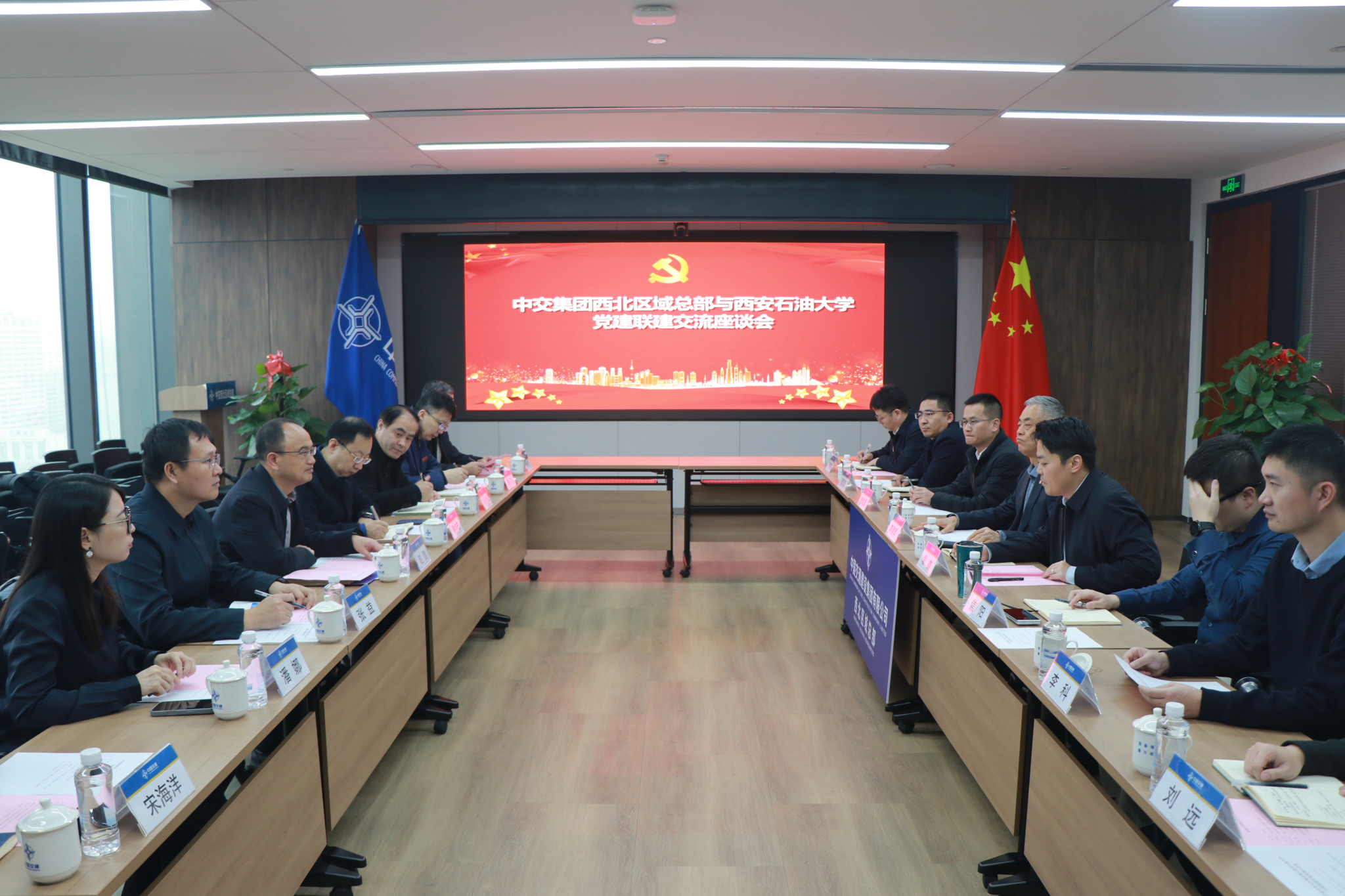 12月12日下午,beat365官方网站与中交集团西北区域总部在中交集团西北区域总部会议室举行党建联建交流及合作洽谈座谈会。beat365副校长赵健,中交集团西北区域副总经理李建军参加了座谈会。