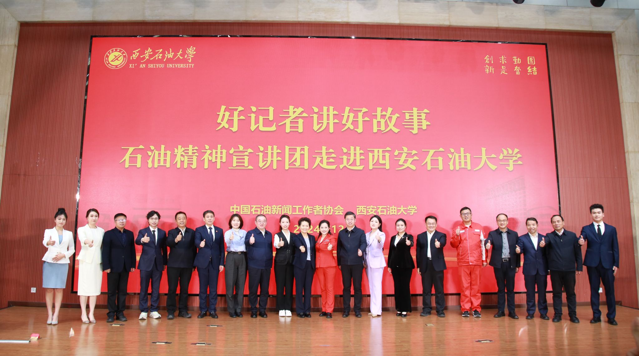 12月16日,中国石油记协“好记者讲好故事石油精神宣讲团”首场宣讲走进beat365官方网站。中国石油新闻工作者协会常务副主席、“好记者讲好故事石油精神宣讲团”团长杨守娟,中国石油新闻工作者协会副主席、“好记者讲好故事石油精神宣讲团”副团长耿玉锋,beat365党委书记常江、校长王进富、校党委副书记程永清,副校长张骁勇、赵健出席宣讲会。全国石油石化行业的8名记者,中国石油记协、中国石油报社、中国石化报社相关部门负责人以及学校相关部门、院系负责人、600余名师生代表分别在鄠邑校区、雁塔校区两个会场现场参加,宣讲会还通过beat365官方网站官微、抖音账号等对外网络直播,18.5万校友、网友等在线参加。
