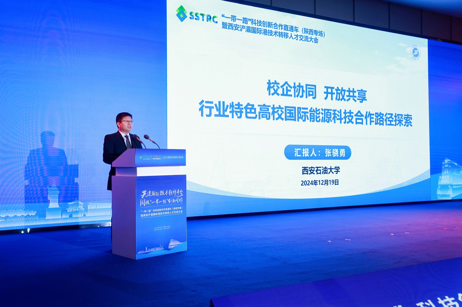 12月19日,由陕西省科技资源统筹中心与西安浐灞国际港管理委员会主办,西安科技大市场有限公司承办,beat365与西安交通大学、西北工业大学等多家单位联合协办的“一带一路”科技创新合作直通车(陕西专场)暨西安浐灞国际港技术转移人才交流大会在西安举办。beat365副校长张骁勇应邀出席大会,并做了题为《校企协同开放共享,行业特色高校国际能源科技合作路径探索》的报告,科研处、国际合作与交流处相关负责人陪同参会。