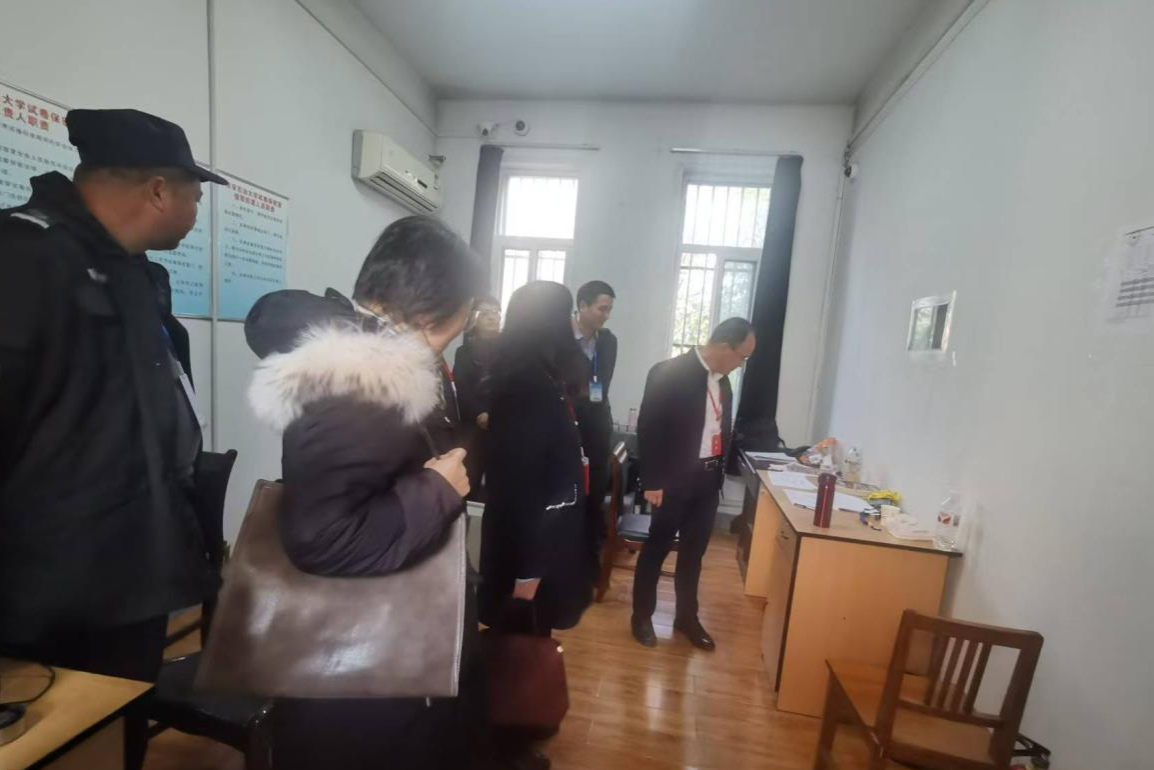 为确保2025年研究生招生考试工作顺利进行,beat365于12月20日下午召开研究生招生考试稳定安全工作检查现场会。学校党委委员、副校长赵健率队深入鄠邑校区对各重要区域进行了现场检查。