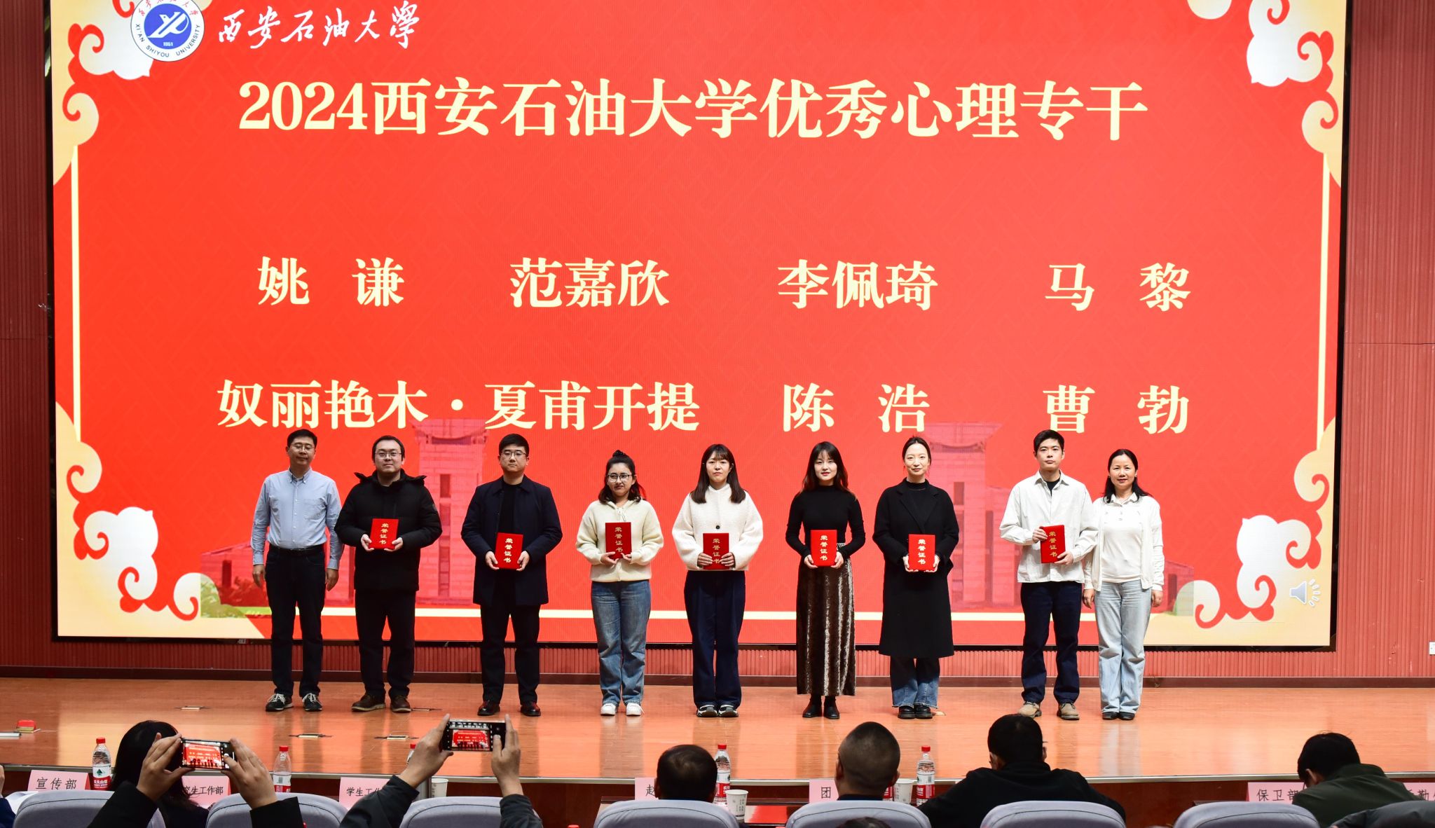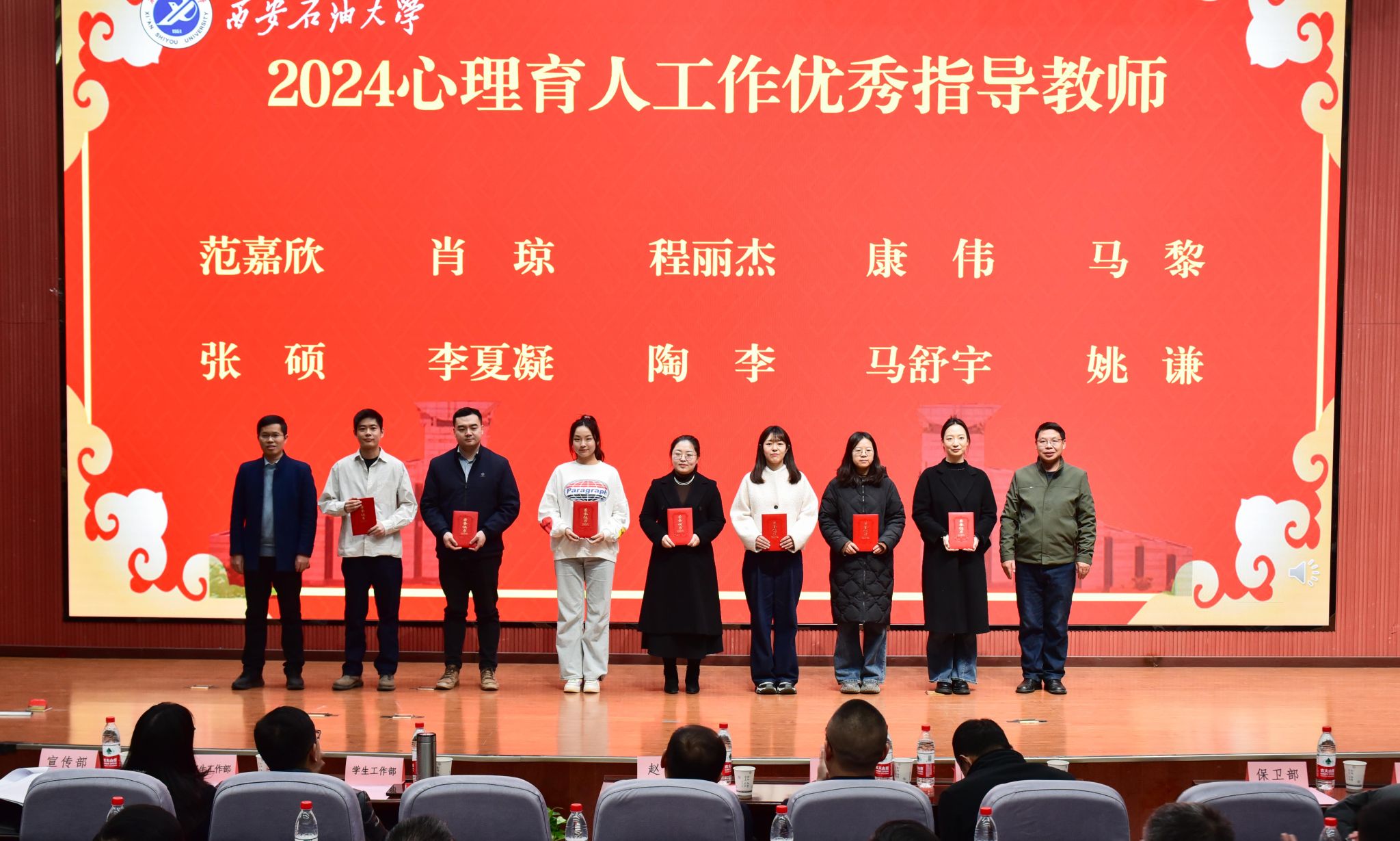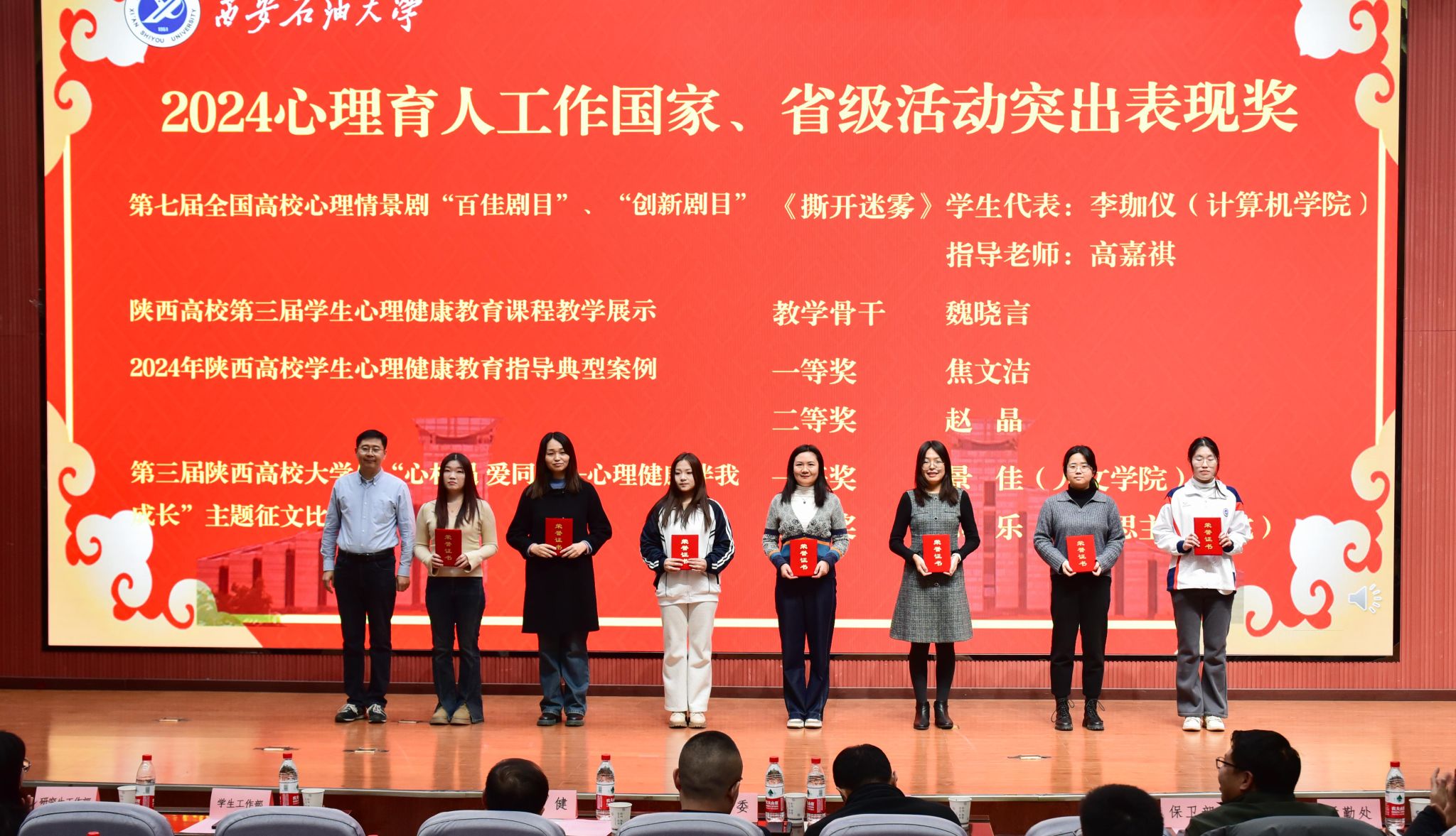 学生工作部部长王亮宣读了beat365师生在2024年国家、省级心理健康教育工作中的获奖情况以及《关于beat365官方网站2024心理育人工作先进单位和个人的表彰决定》。与会领导为获奖个人及集体颁奖。