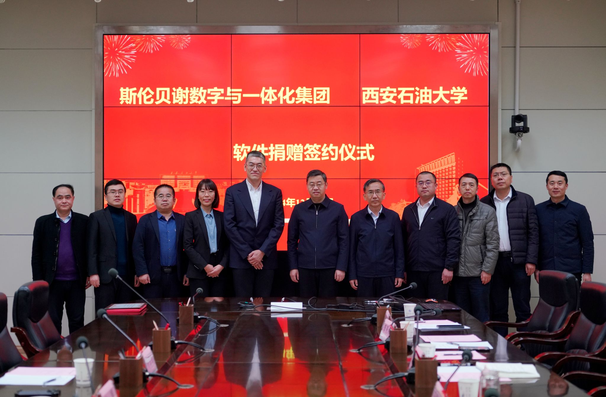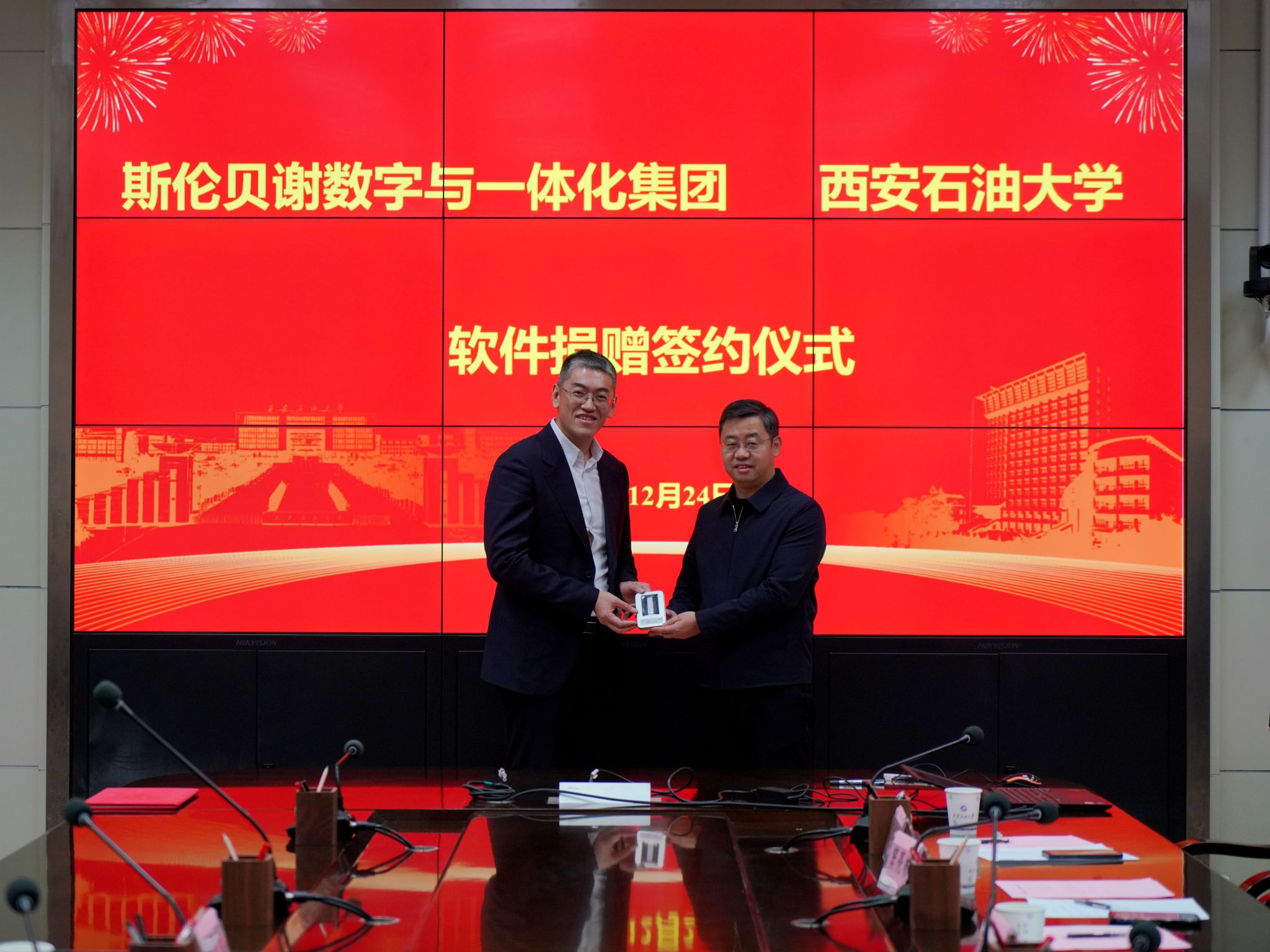 12月24日,斯伦贝谢数字与一体化集团总经理朱明等一行3人来校进行交流访问,并向学校捐赠了ECLIPSE等九款行业应用软件。校长王进富、党委副书记张木出席会议。