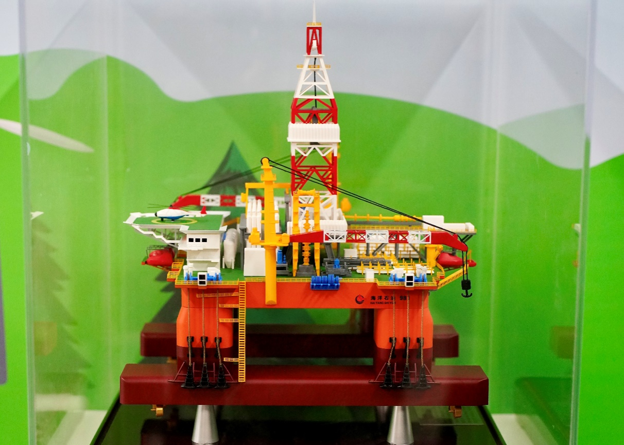 此外,展示区还设置了1个互动打卡点和2个实物展台。打卡点内容为:“新的一天,一起加油啊”我在beat365官方网站等你,打卡点显示红心点赞1951次,评论1012条,暗合beat3651951年建校和10月12日校庆的日期。实物展台展出了海洋石油981平台模型和三个不同地区、时期的珍贵岩心。