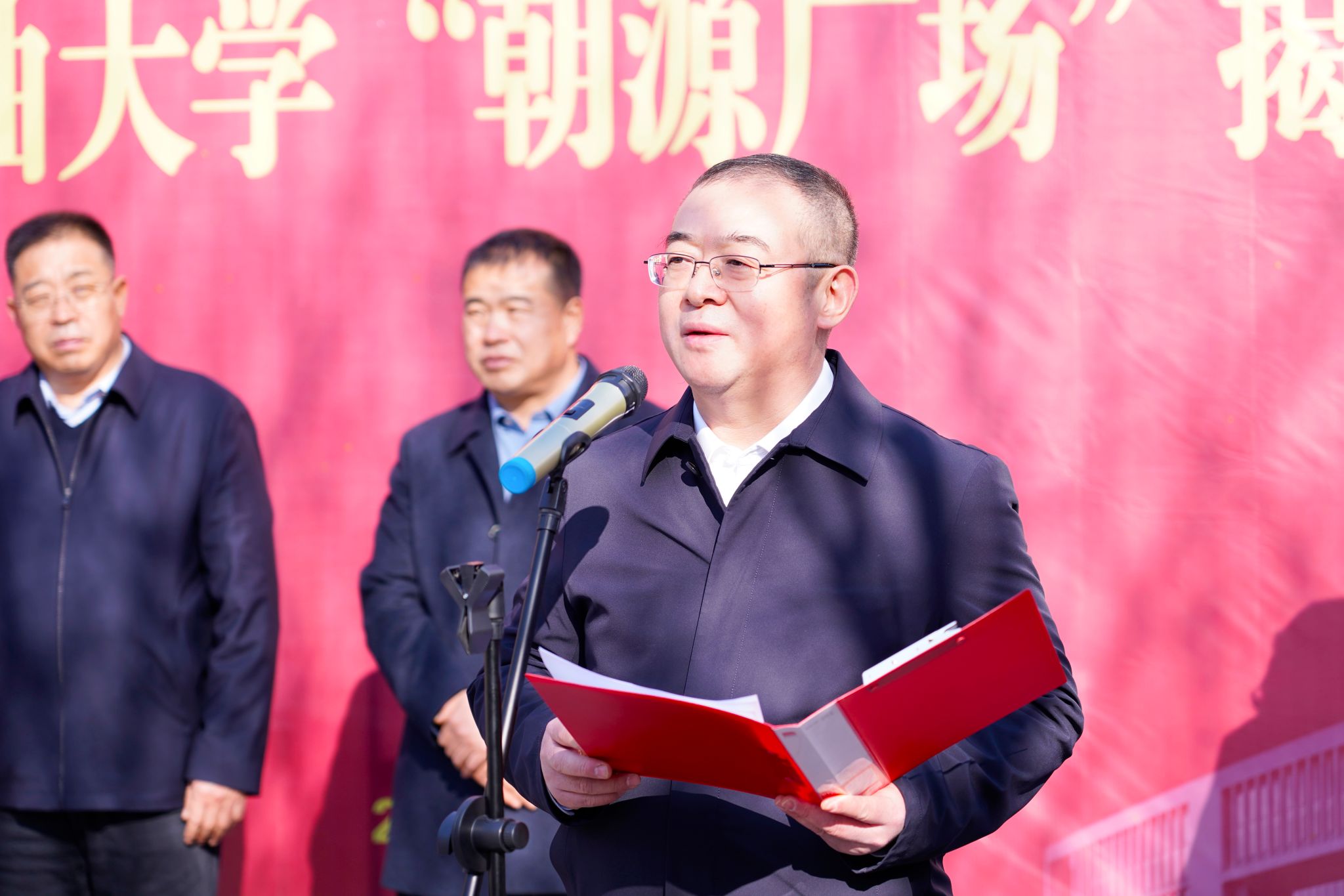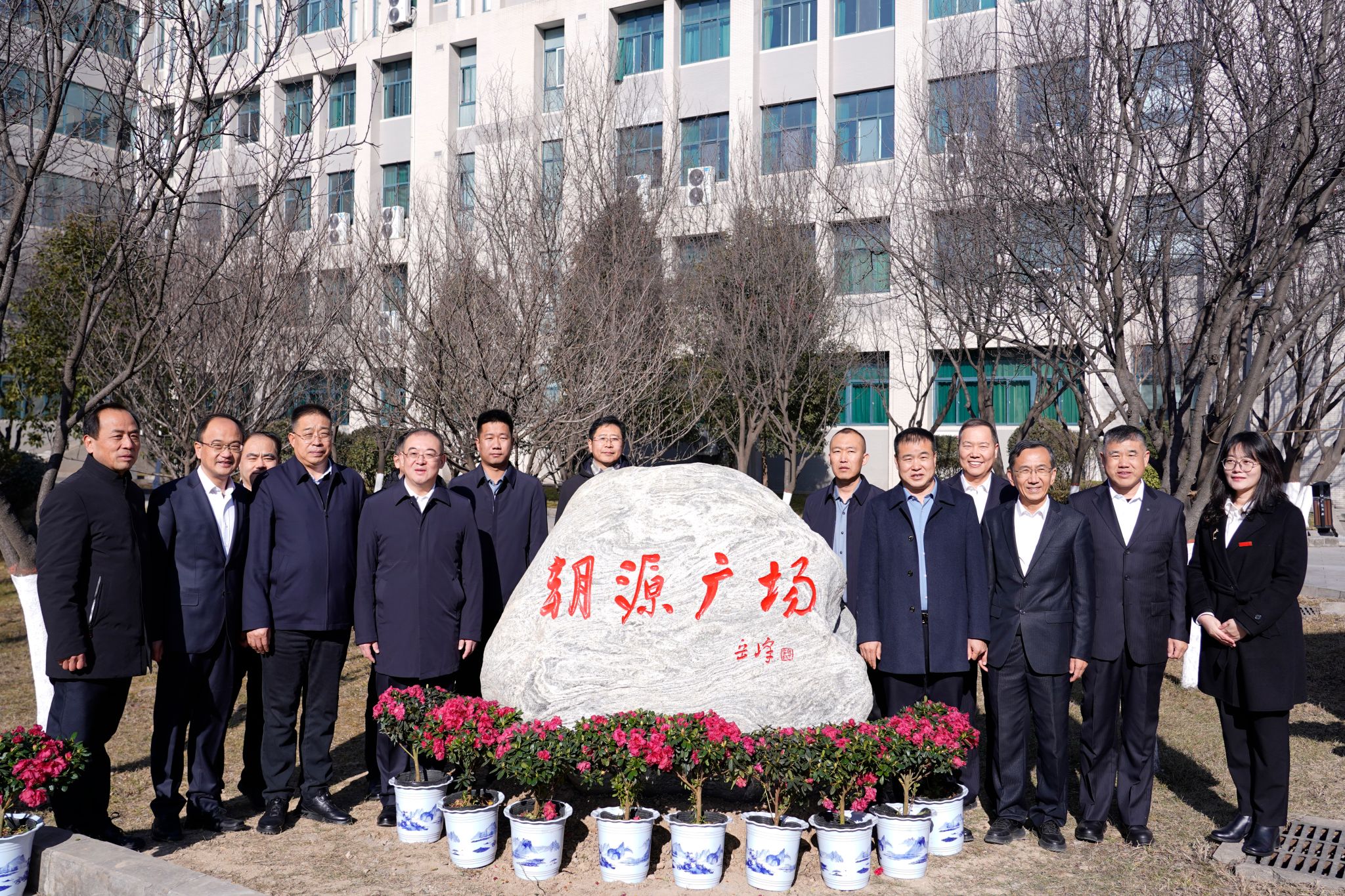 12月28日上午,beat365“朝源广场”冠名揭牌仪式在鄠邑校区博览楼中心广场隆重举行。校党委书记常江、党委副书记张木、神木市朝源矿业有限公司董事长杨小平出席仪式。朝源矿业总经理杨小军、矿长卢宇、办公室主任李峰,学校相关职能部门负责人及师生代表60余人参加仪式。仪式由副校长赵健主持。