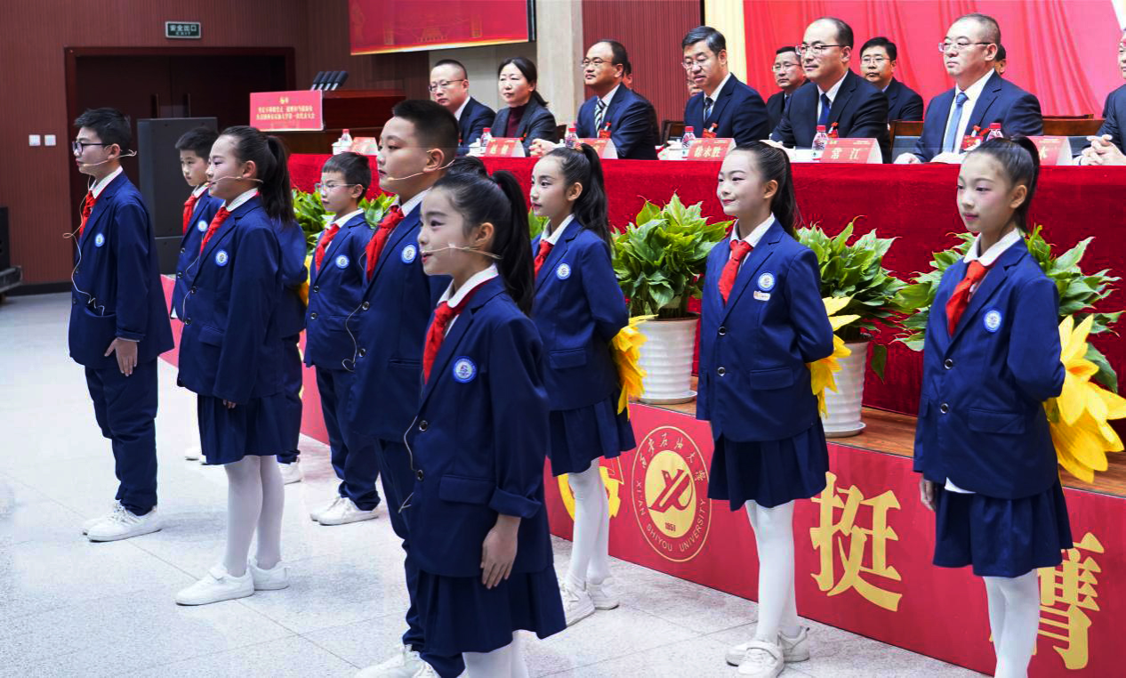 西安滨河荣华实验小学少先队员代表在大会开幕式献词。