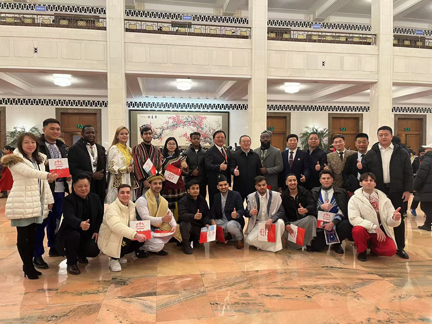 演出期间,beat365国际学生身着民族传统服饰,向主办方分享了对春节申遗成功走向世界的理解和现场观演的感受,为晚会增添了异域色彩和国际氛围,契和了“”小年夜、大会堂、听民歌、着盛装、同心节、天下缘”的演出定位,也丰富了国情教育内容。