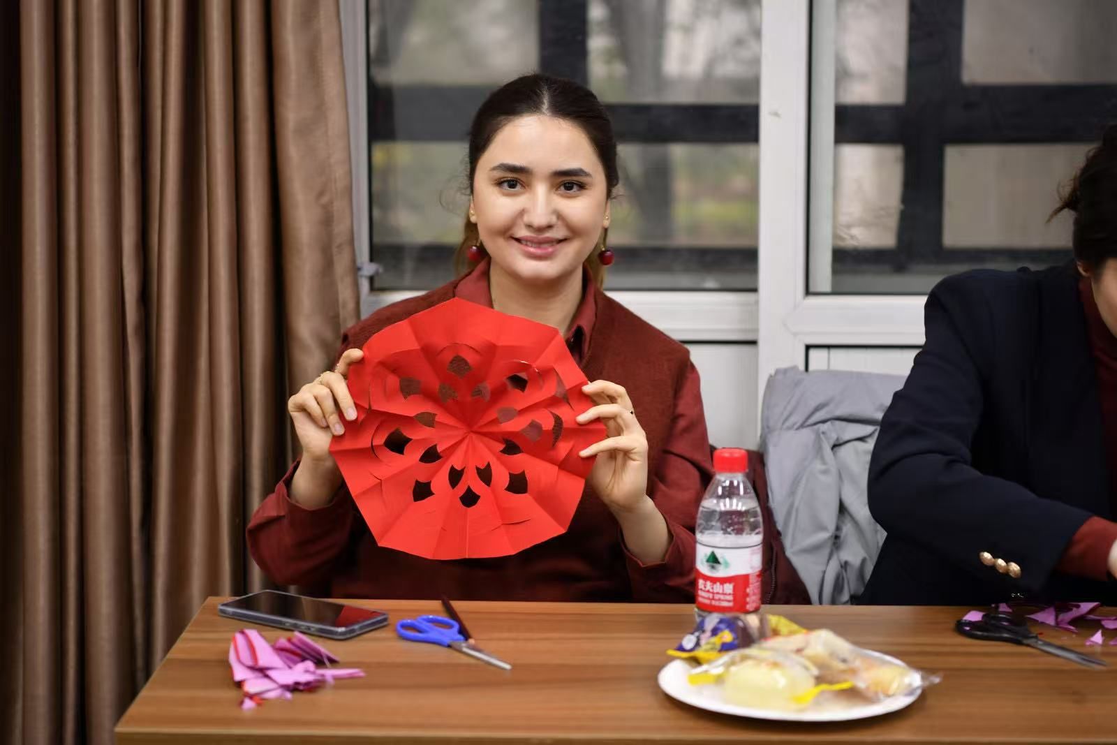 慰问期间,张骁勇与国际学生们一道实践,亲自示范包饺子的方法和蛇形剪纸技巧。大家围坐在一起,欢声笑语不断,共同庆祝农历新年的到来。