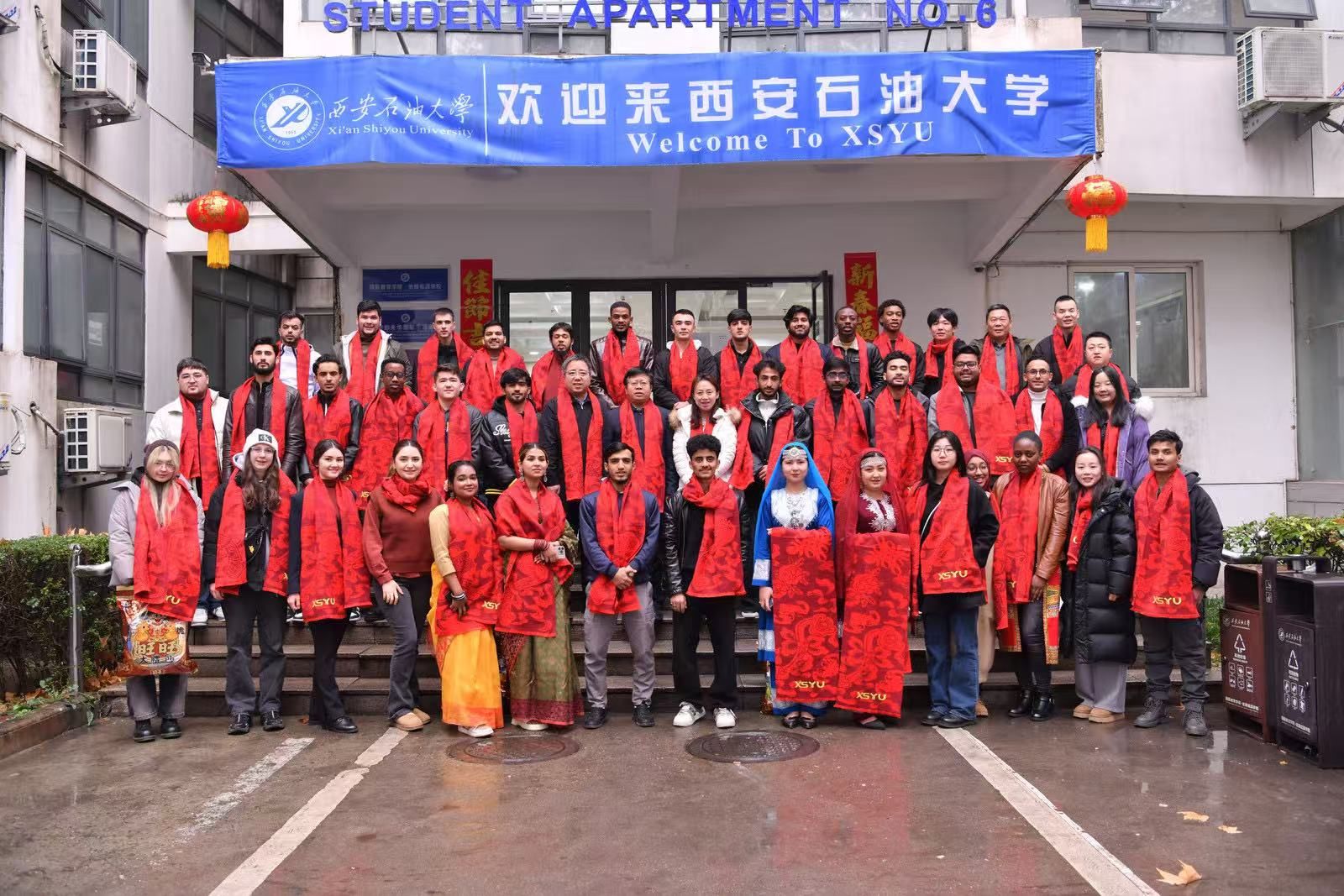 1月24日上午,beat365在明德校区国际学生公寓举办“共庆中国年 共筑中国梦”2025年国际学生欢度春节系列活动,副校长张骁勇看望慰问留校国际学生及公寓值班工作人员。国际合作与交流处、国际教育学院负责人陪同参加。