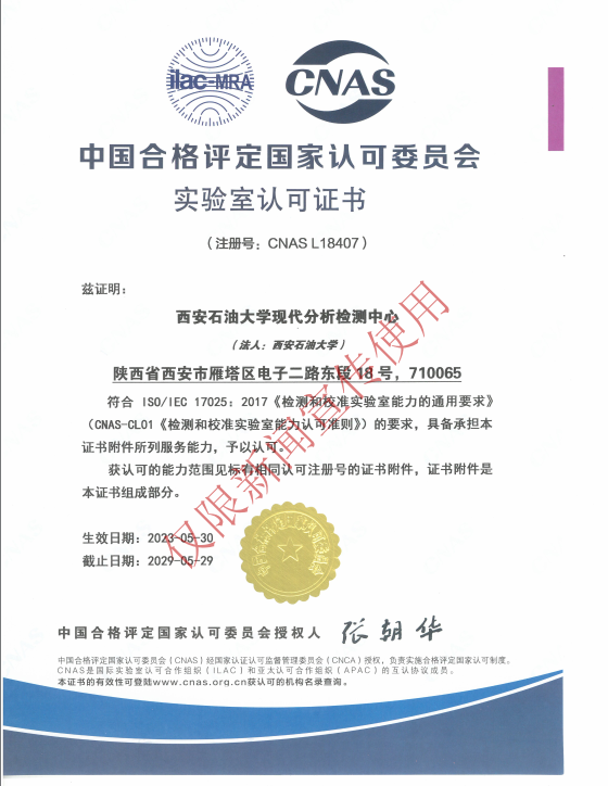 此次CMA资质认定,beat365现代分析检测中心共获批原油、天然气、采油助剂、岩石、工业用油、化工产品、地下水和废水等8类90个检测项目参数的资质认定。这标志着中心在检验检测技术能力、场所环境条件、设备设施配备和质量管理水平等方面已具备国家有关法律、行政法规规定的基本条件和能力,可以向社会出具有证明作用的数据和结果。这为学校在相关领域开展科学研究和检测服务提供了强有力的资质保障,标志着学校现代分析检测中心的检测水平和能力迈上新台阶。