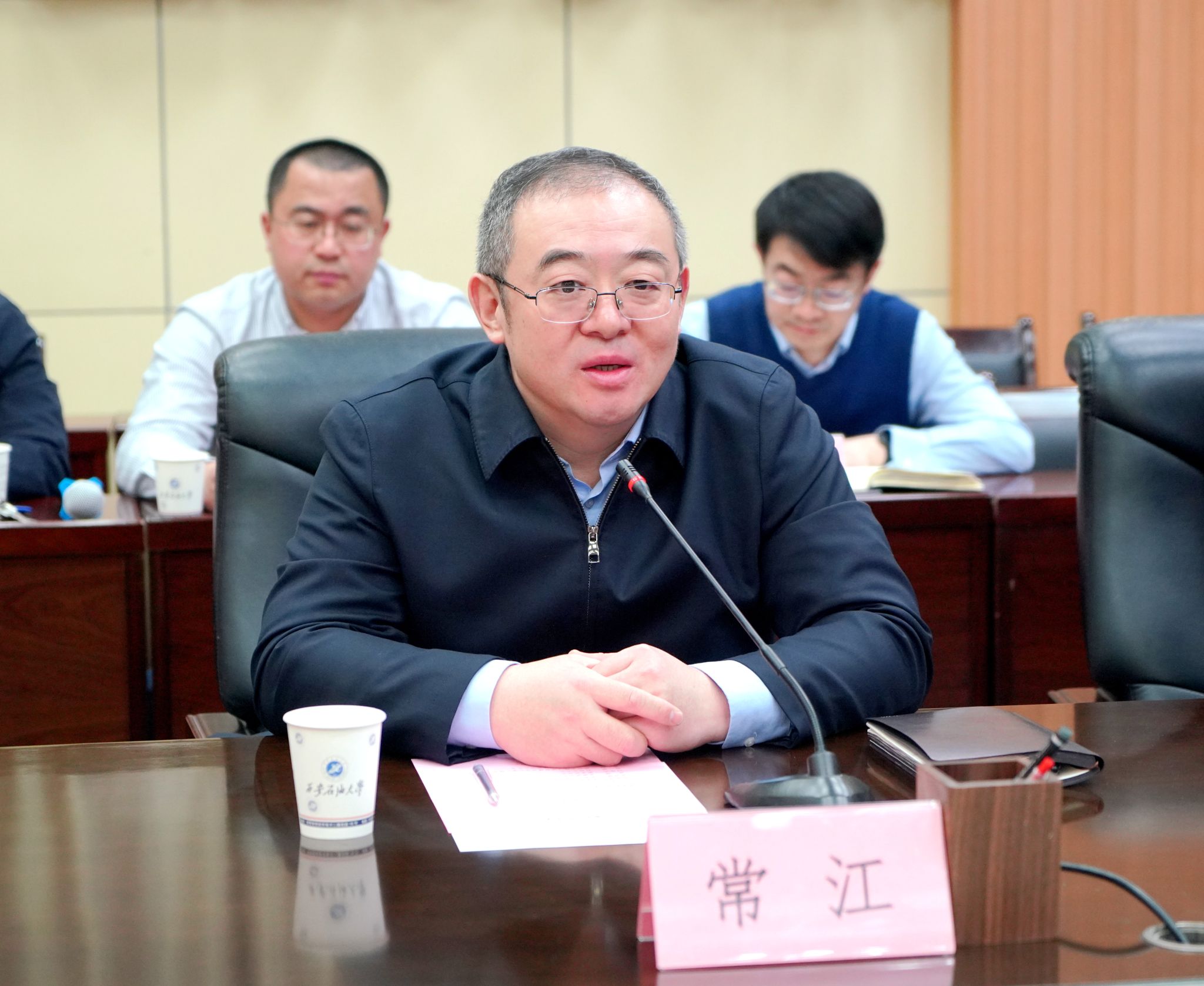 会上,常江对杨爽和李金华一行来访表示热烈欢迎,对长期以来对学校的关心和支持表示衷心感谢。他梳理了学校的历史发展脉络,回顾了学校赓续红色血脉,传承石油基因,具备区位优势的办学情况,并从人才培养、科学研究、学科建设、高层次人才队伍建设、社会服务、文化建设等方面介绍了学校近年来取得的成效。他表示,学校在推进高水平教学研究型大学进程中,始终秉持开放办学理念,大力推动对外合作,致力与科技前沿及行业发展相结合。华大集团和中科院地质所分别在生命科学和地球科学等前沿领域享有盛誉,在人才联合培养和科技创新方面颇有建树。学校自2024年起设立了2个本科生拔尖创新人才班,旨在通过与行业领军企业和科研院所联合,对接行业和产业需求,拓宽学生眼界和视野,加强学生创新能力意识培养,提升工程实践能力,培养符合国家和社会发展需要的高素质人才。希望三方以此次座谈会为契机,立足国家战略需求,构建工作联络机制,在人才联合培养、科学研究、技术创新等方面建立紧密的合作关系,持续推进多层次、全方位合作,共同推动行业科技创新与产业转型升级,形成多方共赢的良好局面。