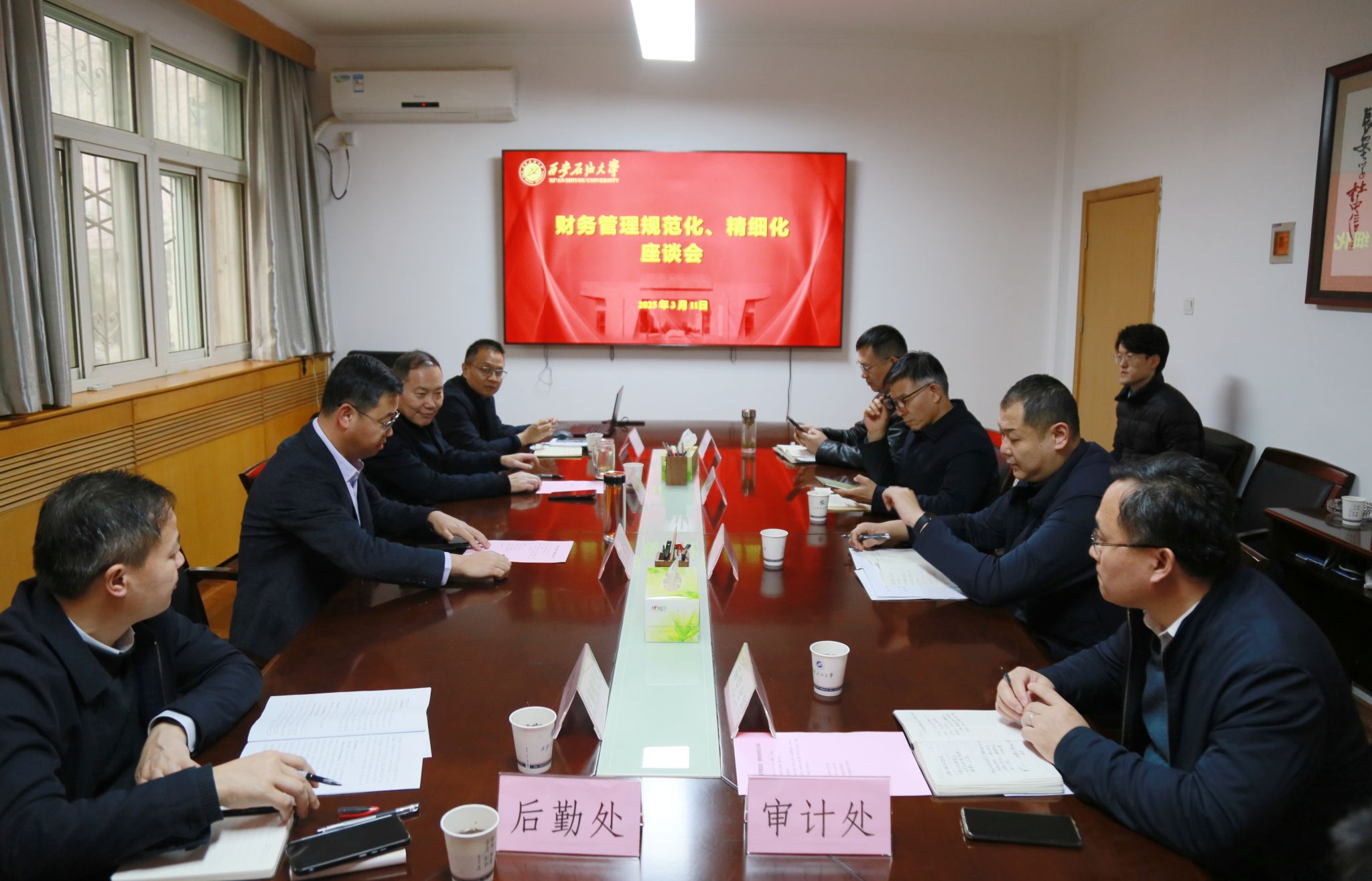 2025年3月11日,学校财务管理规范化、精细化座谈会议在雁塔校区行政楼二楼会议室召开。会议由校长王进富主持,党委办公室(校长办公室)、发展规划处、人事处、教务处、科研处、研究生院、财务处、审计处、后勤处主要负责人参加会议。