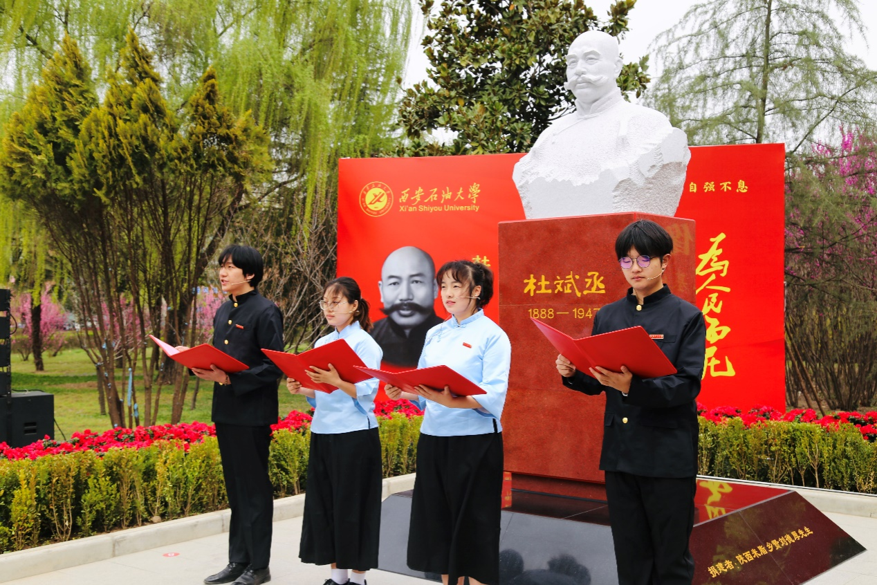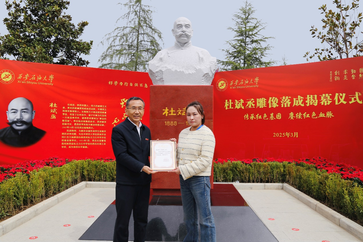 王进富在总结中强调,杜斌丞先生一生追求进步,追求真理,坚持革命。雕像的落成,既是对先生的致敬,更是对精神的传承。站在新的历史起点,全校上下应以杜斌丞先生的不朽功绩和家国情怀为指引:坚守教育报国初心,让“好学力行、自强不息”的校训精神代代相传;传承兴教育人思想,让“石油精神办学、铁人精神育人、延安精神铸魂”的办学理念生生不息;勇担能源报国使命,让“为人诚实、基础扎实、作风朴实、工作踏实、开拓创新”的西石大“四实一新”人才培养品牌熠熠生辉。