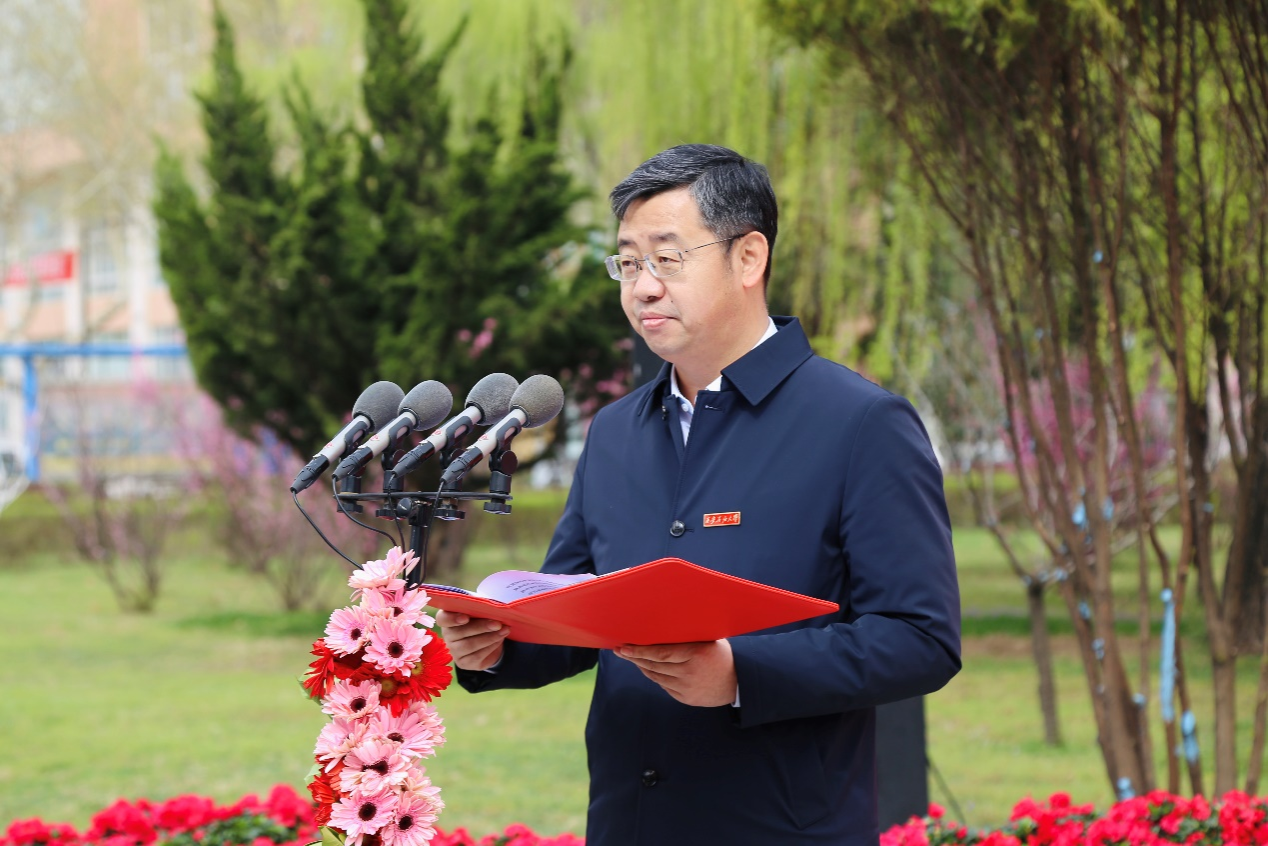 常江代表学校致辞,向出席揭幕仪式的来宾、关心支持雕像建设的同仁、捐建者刘德厚先生表示感谢。他指出,这一年学校加强校园文化建设,进一步发掘和用好学校文化资源,构筑特色鲜明的大学文化体系,持续深化铁人精神教育,强化“四实一新”育人品牌特色,不断梳理办学历史,以史鉴今育人,用历史传承厚积奋进源泉。他强调,为杜斌丞先生竖立雕像,既是学校对重要创校人物精神遗产的传承,也是对beat365办学理念的深化表达,杜斌丞雕像必将成为西石大校园文化地标和校园文化建设的新起点。