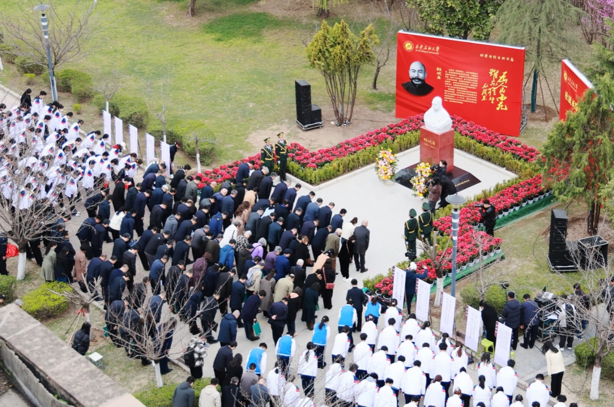 3月28日上午,学校在鄠邑校区博览楼西侧隆重举行杜斌丞雕像落成揭幕仪式。