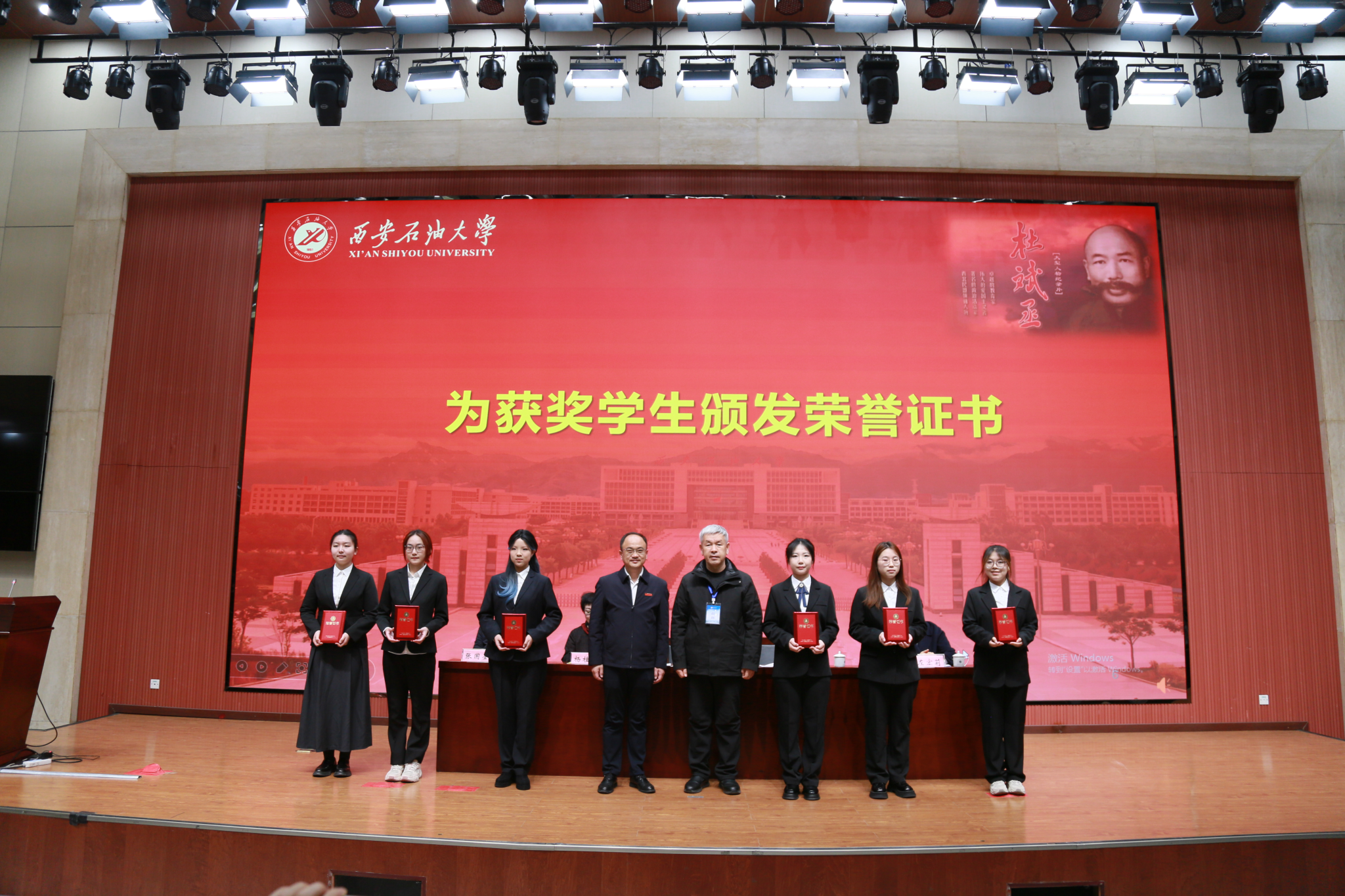 赵健与杜芳滨会长为六位获奖学生颁发了荣誉证书,向同学们致以祝贺并赠书。现场气氛庄重而热烈。