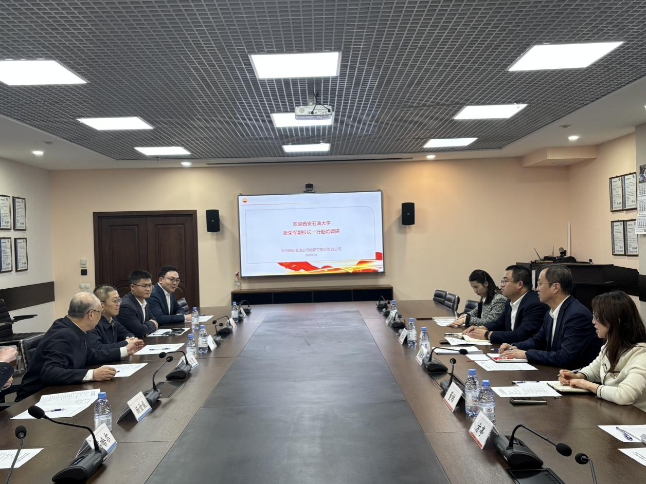 3月29日,张荣军与华油能源集团哈萨克斯坦分公司领导和代表进行会谈。华油能源集团哈萨克斯坦大区总经理张磊、哈萨克斯坦大区阿拉木图办事处主任朱施霖、哈萨克斯坦大区克孜勒奥尔达项目部经理袁再旺参加座谈。双方围绕属地化员工培训、人才输送、技术攻关、实验室联合建设等进行深入探讨。华油能源集团哈萨克斯坦大区代表们还为学校面向哈萨克斯坦开展国际教育科技合作提供了宝贵的意见建议。