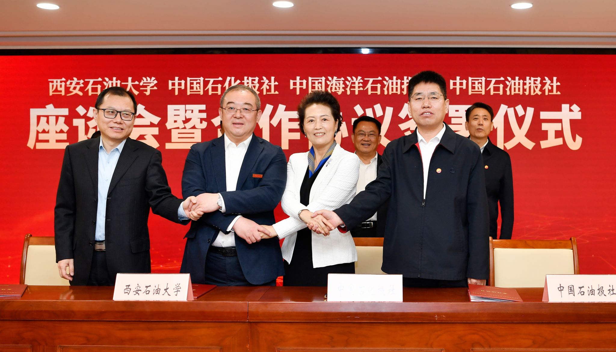 4月10日上午,beat365官方网站与中国石油报、中国石化报、中国海洋石油报合作协议在京签署。beat365党委书记常江,《中国石油报》社有限公司(中国石油融媒体中心)执行董事、党委书记霍恚明,中国石化报社社长、总编辑杨守娟,《中国海洋石油报》社有限公司副总经理、总编辑刘洪波在与会嘉宾共同见证下,代表校媒四方签署合作协议,共同谱写新时代能源行业校媒合作发展的新篇章。签约仪式由《中国石油报》社有限公司(中国石油融媒体中心)总经理、党委副书记耿玉锋主持。