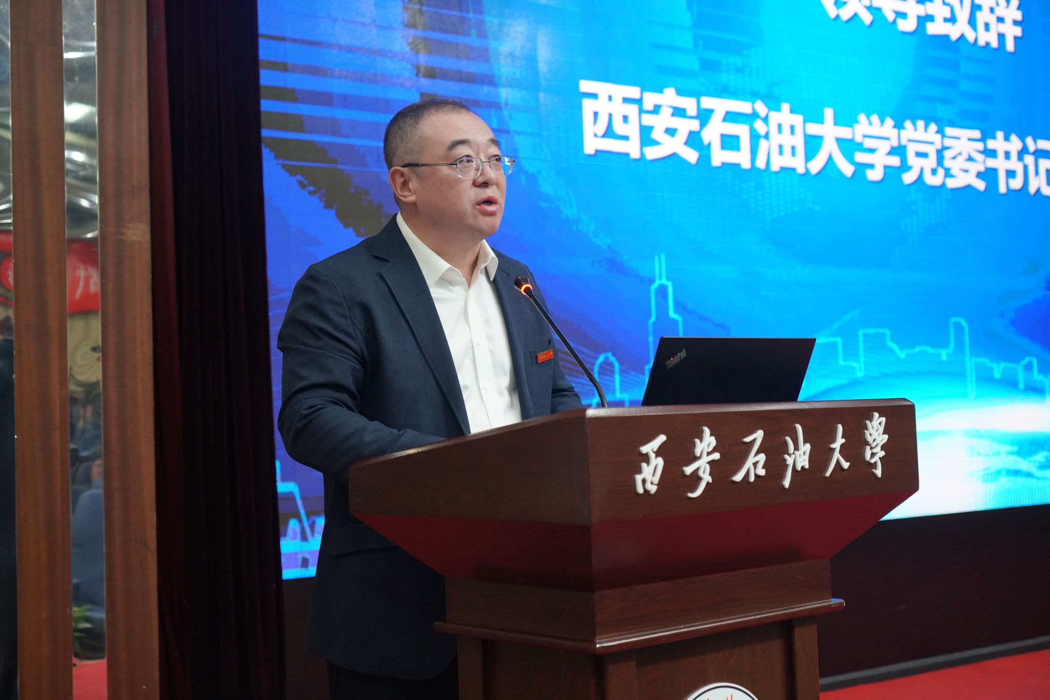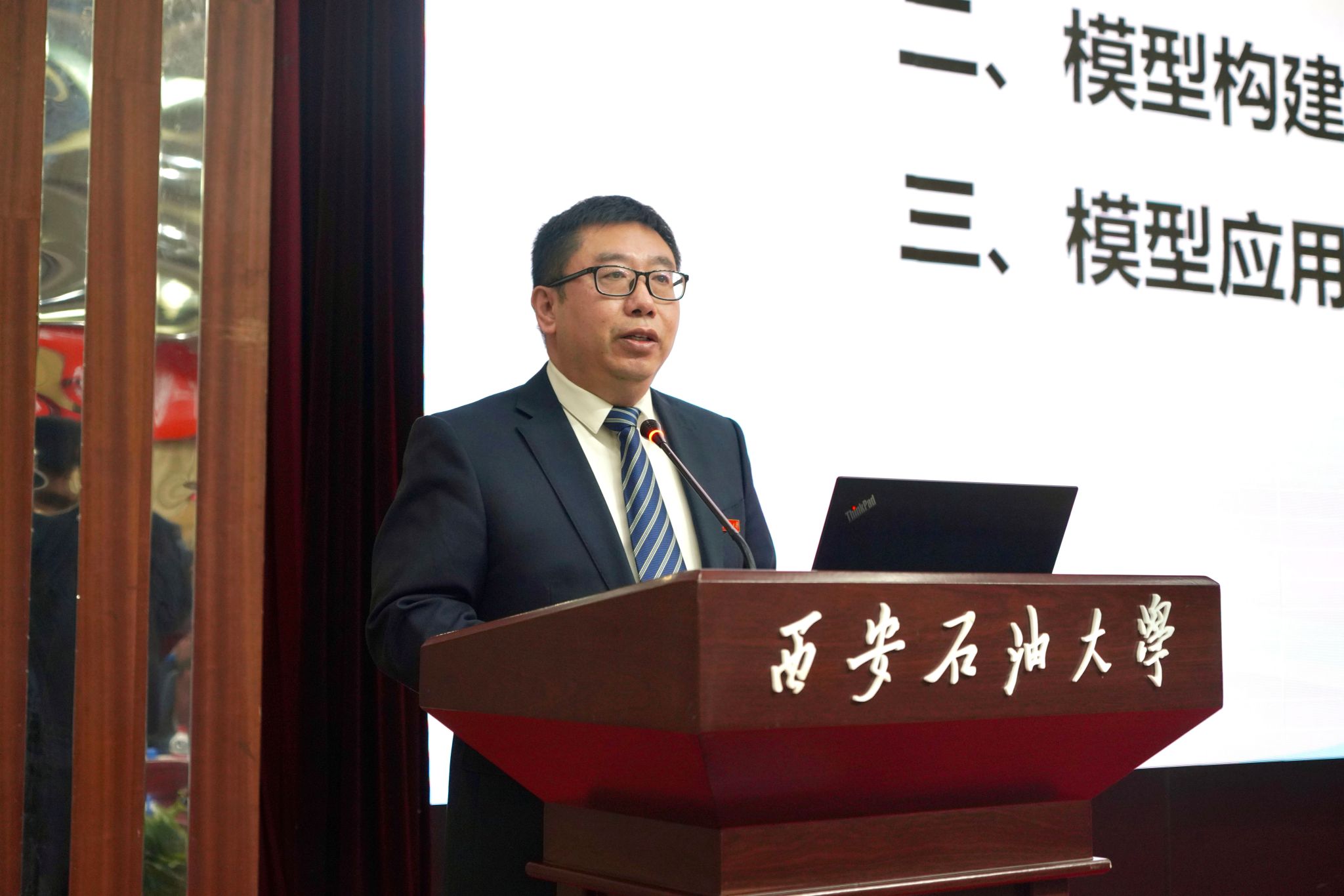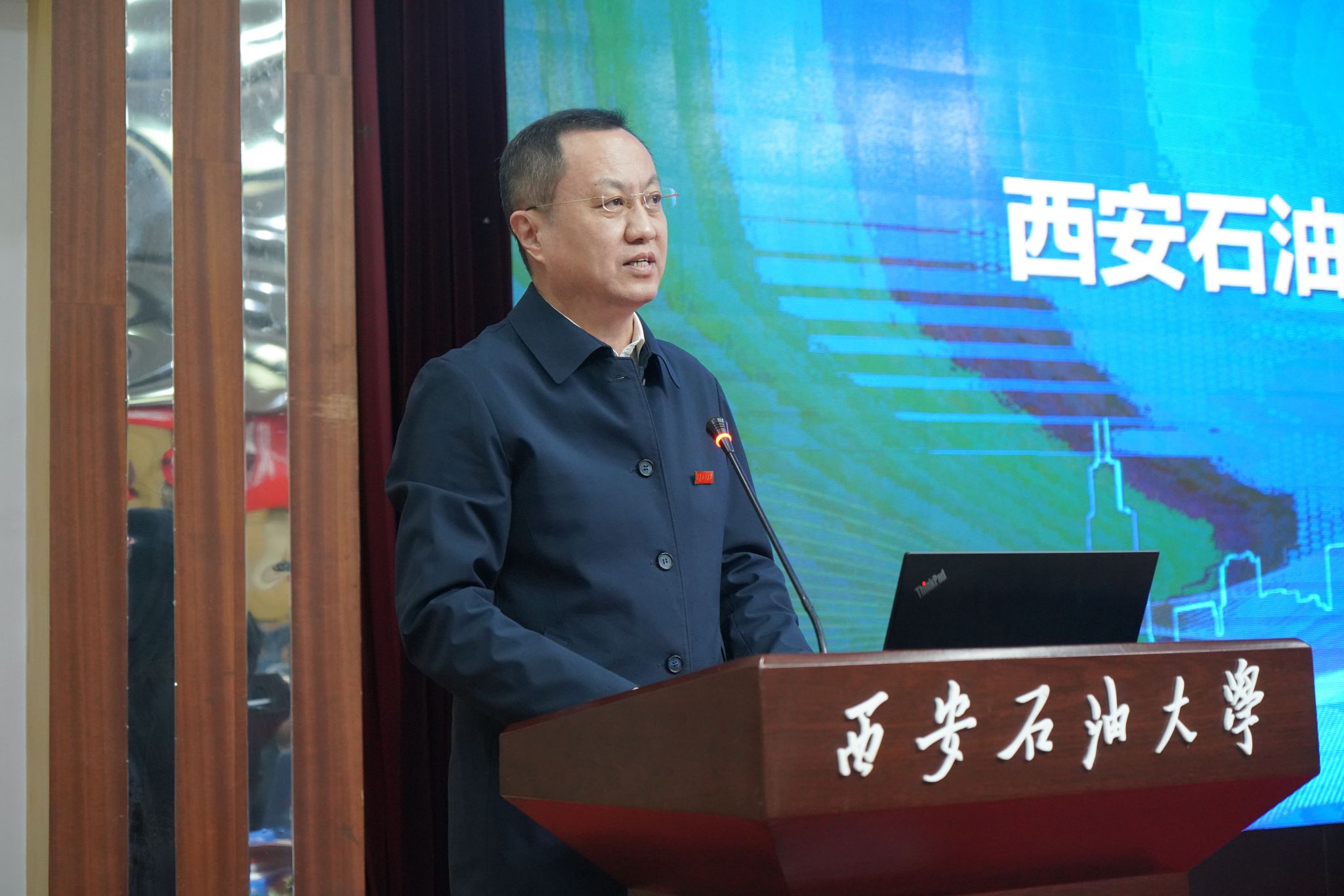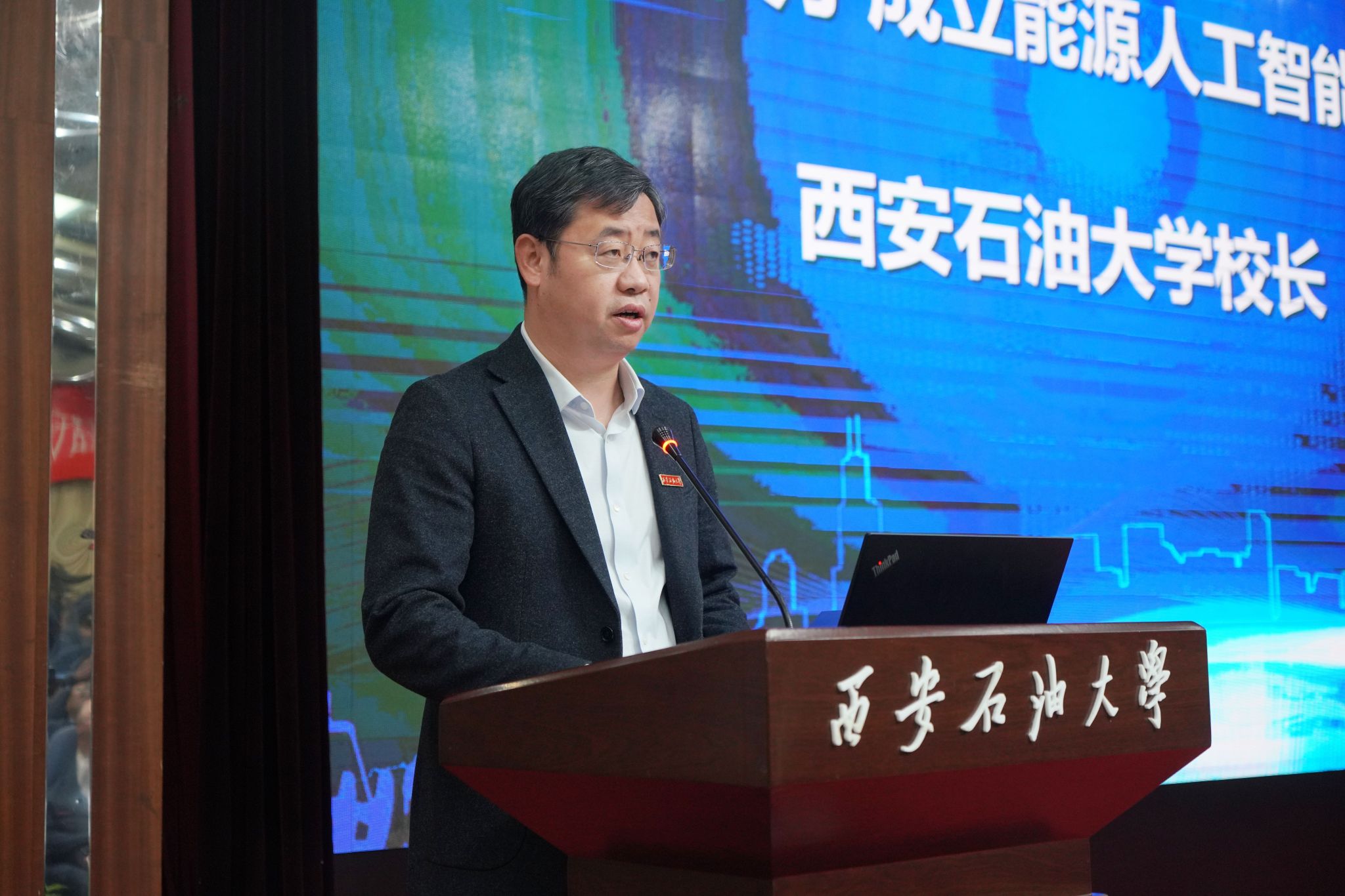 4 月 14 日上午,学校在雁塔校区举行能源人工智能研究院成立大会暨力行石油人工智能大模型发布会。中国科学院院士、西安交通大学徐宗本教授出席大会并作特邀报告,陕西省数据和政务服务中心副主任王根平讲话。陕西省教育厅、科技厅、工信厅等政府部门,中国石油长庆油田、国家管网西北分公司、昆仑数智等石油石化企业,西安交通大学、中国石油大学(北京)等兄弟高校领导和嘉宾出席大会。学校党委书记常江、校长王进富等校领导,职能部门、院(系)负责人及师生代表300余人参加大会。会议由副校长张荣军主持。