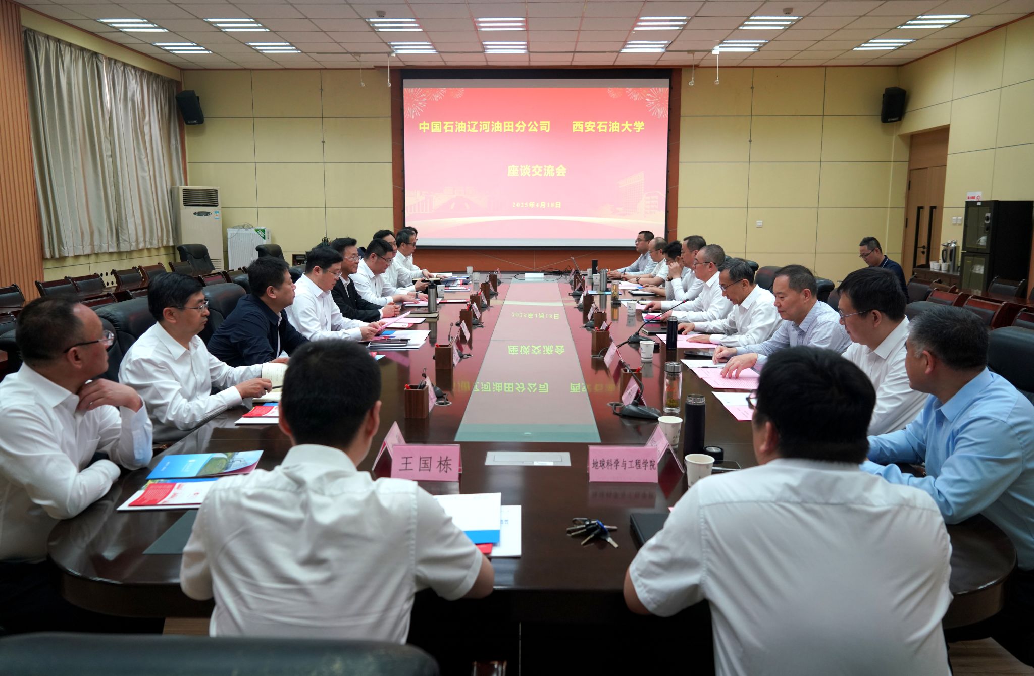 齐振林对学校给予辽河油田的人才供给和技术支持表示感谢,对学校近年来取得的一系列成绩表示祝贺,并介绍了辽河油田的发展历史、业务布局、科技创新以及未来规划。他指出,辽河油田作为国内最大的稠油生产基地,是中国石油天然气股份有限公司的重要战略产区,在油气勘探开发、生产运营等方面取得了丰硕成果。当前,在能源行业转型升级的背景下,辽河油田对科技创新和高素质人才需求日益迫切。他表示,学校长期以来致力和深耕于石油石化领域,近年来在油气勘探、油气田开发、能源技术装备等方面取得了显著成果,为石油石化行业培养了大批优秀人才。希望双方以此次交流为契机,充分发挥各自优势,加强在人才联合培养、科研联合攻关等方面的务实合作,共同为保障国家能源安全和推动石油石化行业高质量发展贡献双方力量。