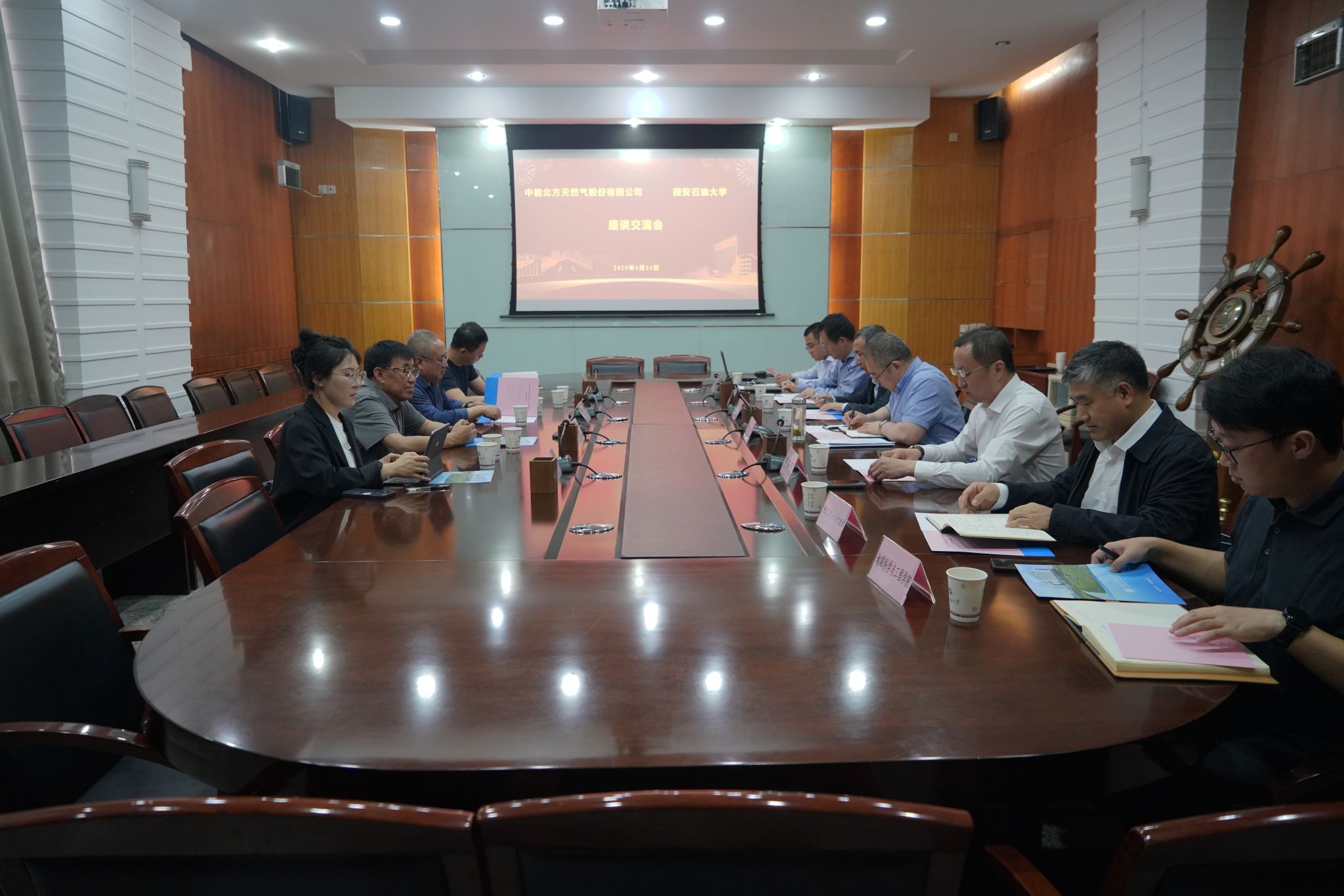 4月23日下午,中能北方天然气股份有限公司(以下简称“北气集团”)董事长方长青一行来校围绕深化校企合作有关事宜座谈交流。陕西省液化天然气产业协会秘书长艾绍军陪同来访。beat365党委书记常江、党委副书记张木出席座谈会,会议由党委委员、副校长张荣军主持。