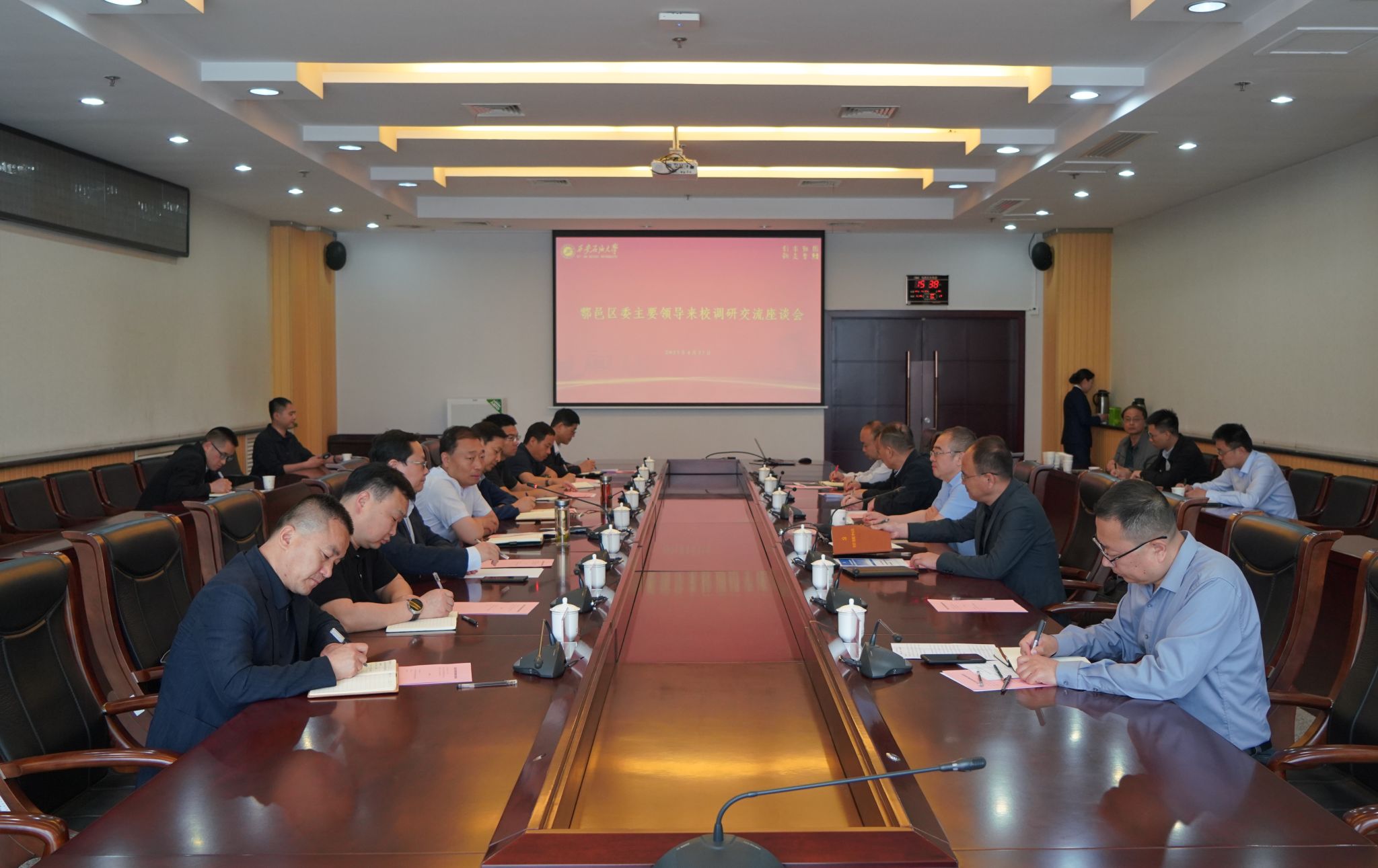 4月27日下午,鄠邑区委书记李化一行来校就进一步校地合作事宜进行交流座谈,区领导舒元华、陈鹏飞和区委区政府相关职能部门负责人参加了座谈。座谈会由校党委书记常江主持,副校长赵健出席会议。beat365党委办公室(校长办公室)、保卫处、发展规划处、基建处、后勤处负责人参加了座谈会。