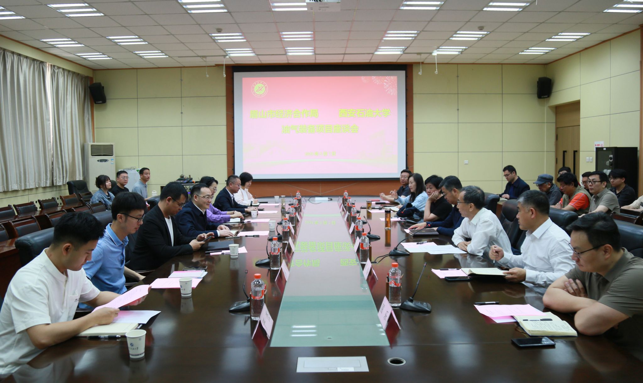 5月7日上午,眉山市经济合作局局长周波一行来校洽谈交流油气装备项目投资事宜,眉山市经济合作局副局长王秀彬、广州盛屹投资管理有限公司董事总经理徐静波、洪雅县经济合作局局长白修明等陪同来访。会议由校党委副书记张木主持,校长王进富出席并讲话。电子工程学院二级教授周静及校友工作与合作交流处、科研处、资产经营公司、土木工程学院负责同志参加座谈。