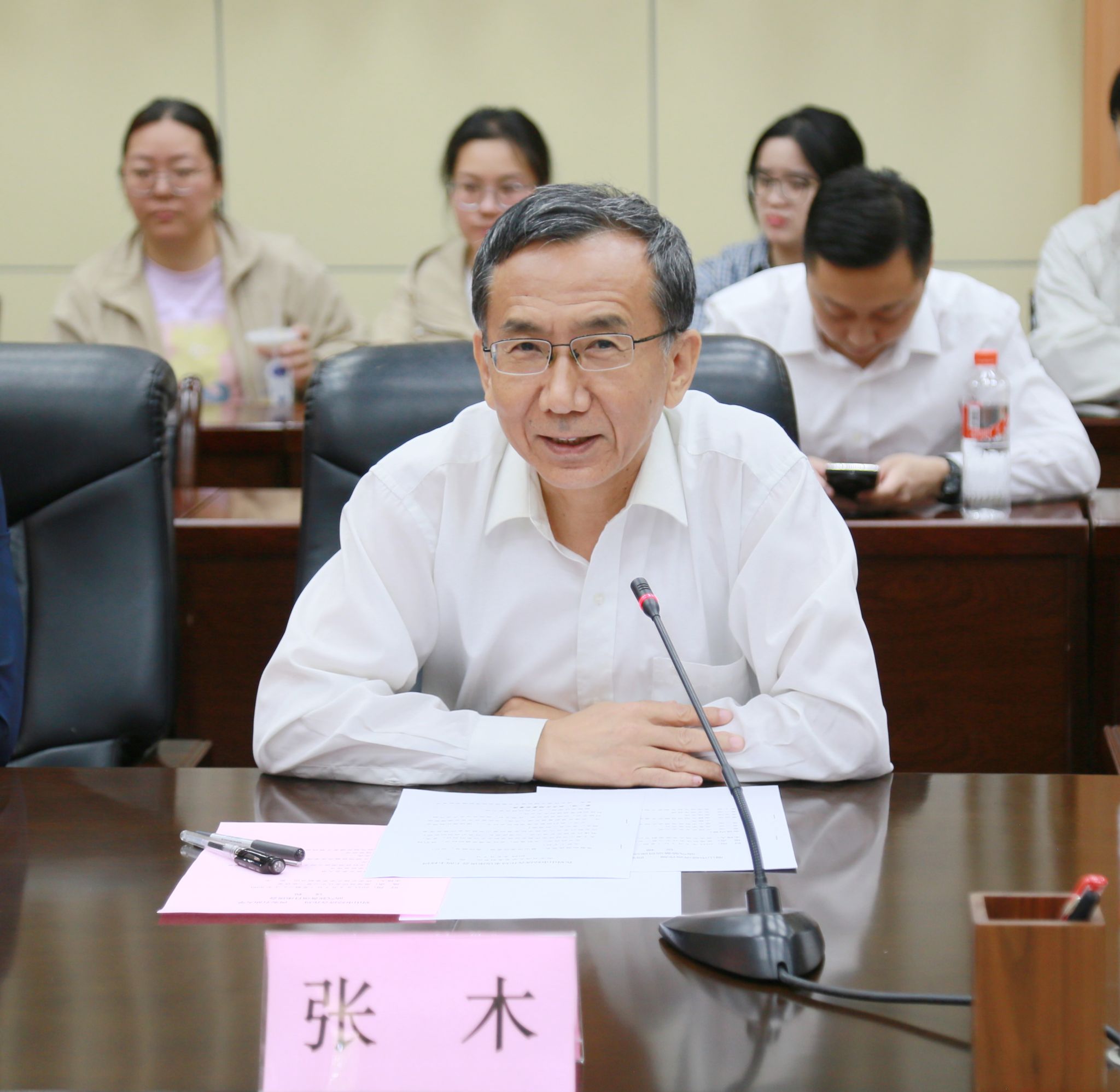 会前,校长王进富、党委副书记张木在雁塔校区西阶会议中心贵宾厅会见了周波一行。