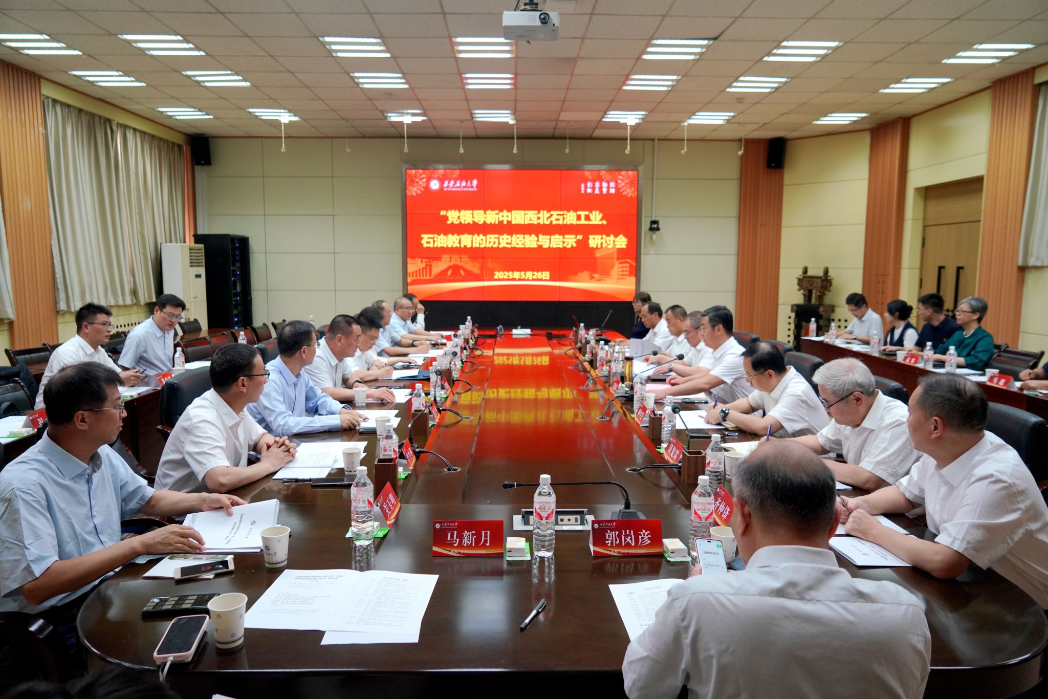 5月26日,学校在雁塔校区第二会议室隆重举办“党领导新中国西北石油工业、石油教育的历史经验与启示”研讨会。中国石油天然气集团有限公司档案馆副馆长韩剑锋,陕西省档案馆编研处处长罗维央,中国石油长庆油田公司党委宣传部部长卢贤瑞、档案馆馆长文才斌,中国石油新疆油田公司党委宣传部部长范大平,中国石油青海油田公司党委宣传部部长高哲鹏,中国石油玉门油田公司党委宣传部部长肖生科,中国石油独山子石化公司党群工作部副部长张朝君,中国石油西北销售公司高级专家关玉明,陕西延长石油(集团)有限责任公司党委宣传部副部长马新月,以及各有关油田单位企业文化宣传、统战工作负责人等出席会议。beat365党委书记常江、校长王进富、党委副书记程永清,党委办公室(校长办公室)、组织部、宣传部、统战部、档案馆(beat365官方网站铁人精神研究中心)等部门负责人,专家学者、师生代表参加会议。会议由王进富主持。