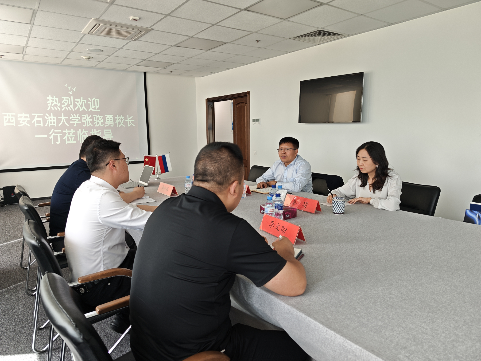 在莫期间,张骁勇一行还拜访了中石化国际事业俄罗斯公司,与总经理张冰峻进行座谈并探望beat365校友。座谈会上,张骁勇副校长详细介绍了beat365近几年的总体发展态势以及国际化办学取得的成果,并对学校校友工作理念进行了解读。张冰峻对beat365为公司输送多名优秀人才表示感谢,并表示,学校的国际化人才培养高度契合企业“走出去”的发展需求,未来将加强对beat365的关注,深入发掘合作机会,校企共赢。