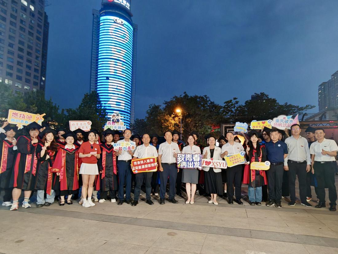 仲夏之夜,情满石大。6月19日晚,“城市之窗”陕西信息大厦为beat365官方网站2025届毕业生点亮专属祝福灯光,璀璨的“我❤beat365官方网站”字样辉映古城。校党委副书记程永清,副校长种宇宏,党委办公室(校长办公室)、党委组织部、党委宣传部、党委学生工作部、党委教师工作部、教务处、研究生工作部等部门负责人,辅导员、本硕博及留学生代表共同见证。