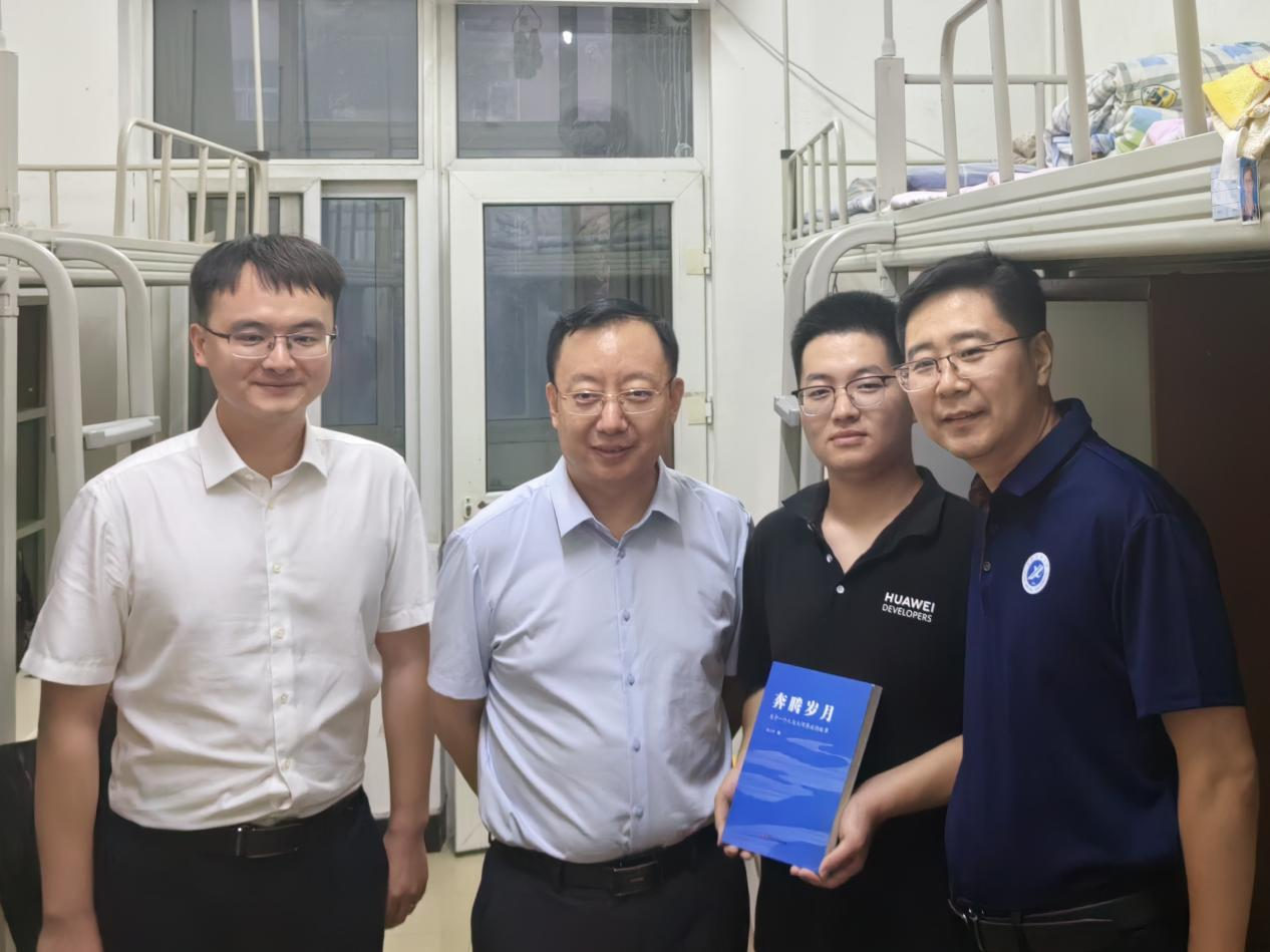 走访中,种宇宏与毕业生们亲切交流,关切询问同学们在校期间的学业成长、就业去向及未来规划。交谈过程中,他还向毕业生们赠送了饱含心意的毕业纪念品,包括镌刻着“石大栋梁 矢志报国”字样的英雄钢笔,蕴含励志精神的书籍《奔腾岁月》,以及憨态可掬的易班熊玩偶,每一份礼物都寄托着对毕业生的美好期许与深情祝福。同学们敞开心扉,畅谈成长感悟与奋斗目标。对升学深造的同学,种宇宏充分肯定其学业成果,殷切嘱托大家要秉持“好学力行,自强不息”的校训精神,在学术道路上勇攀高峰;对即将奔赴工作岗位的同学,他送上诚挚祝贺,勉励大家在新岗位上脚踏实地、锐意进取,以实干成就人生价值。温馨互动点燃了现场气氛,同学们纷纷拿出获赠书籍,热情邀请种宇宏副校长在扉页签字赠言,希望带着这份珍贵的祝福踏上新的征程。
