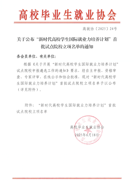 “新时代高校学生国际就业力培养计划”由高校毕业生就业协会发起,旨在贯彻落实《教育强国建设规划纲要(2024—2035年)》,通过强化课程设置、开展国内外实践活动、加强师资培训和拓展国际交流与合作等方式,构建新时代高校学生国际就业力培养体系,培养具有国际竞争力的复合型人才,服务国际化战略和企业出海需求。