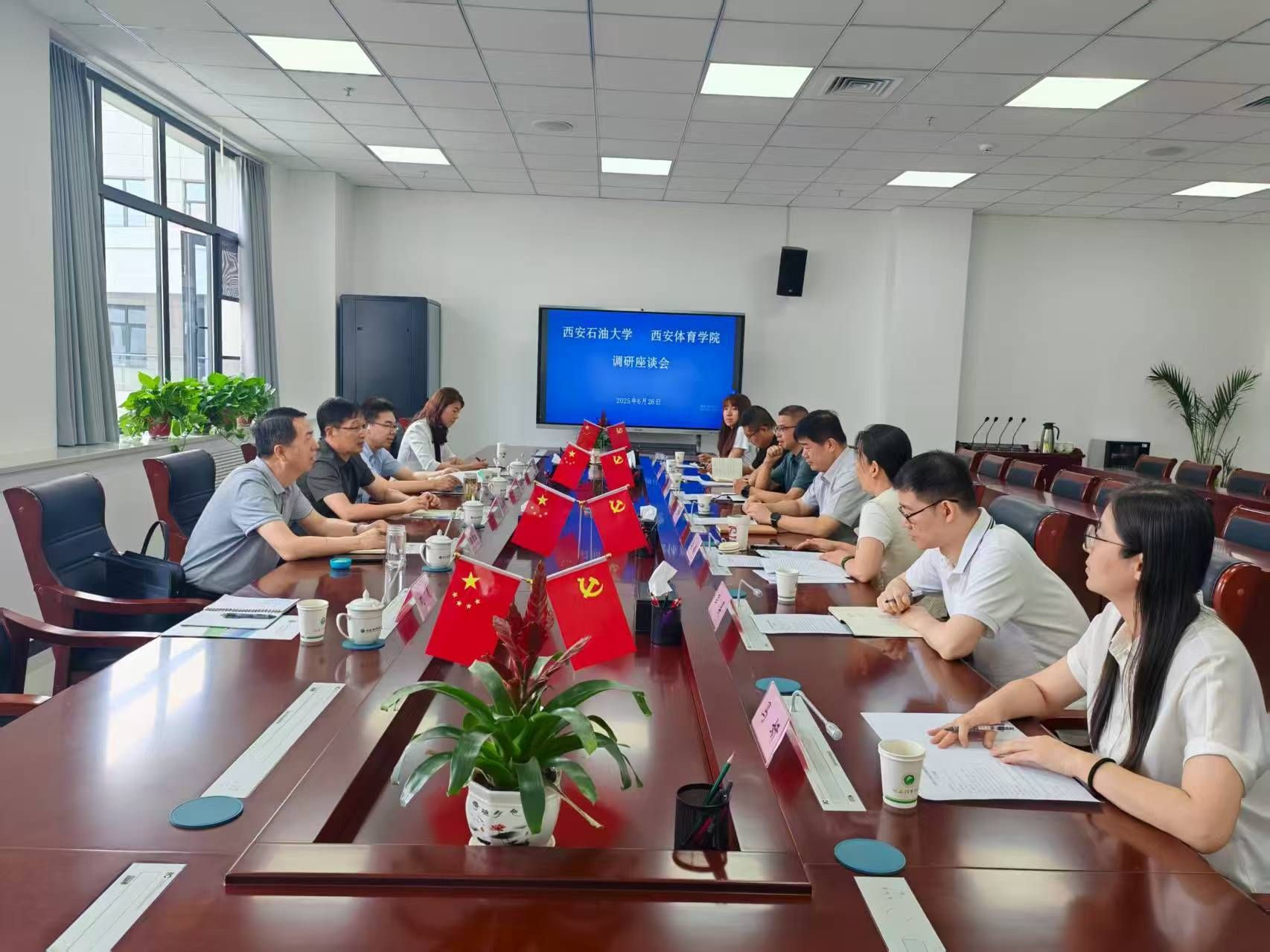 6月26日,副校长苏文甫一行赴西安体育学院鄠邑校区,就信息化建设与国有资产管理工作开展调研,并与该校副校长毕德鹏及相关部门负责人进行了交流座谈。beat365信息化建设与管理处、国有资产处等负责人陪同调研。