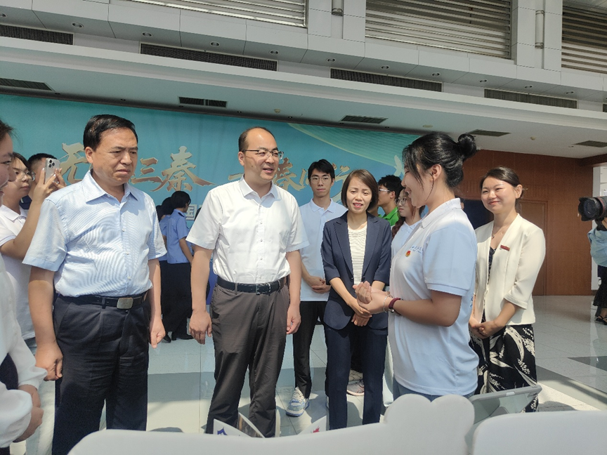 团省委书记徐永胜与beat365师生亲切交流,在听取了beat365社会实践团队队员代表刘慧敏关于实践团队近年来深入校园、社区和乡村开展禁毒知识普及和法治宣传的工作成效后,徐永胜对beat365实践团队的专业素养和社会责任感给予高度评价,特别对队员们连续五年坚持开展禁毒志愿服务的执着精神表示赞赏。他勉励同学们继续发挥青年先锋作用,创新宣传形式,扩大覆盖范围,为构建无毒社会贡献青春力量。