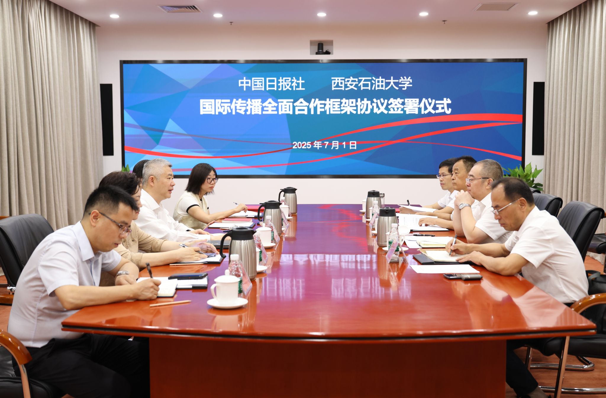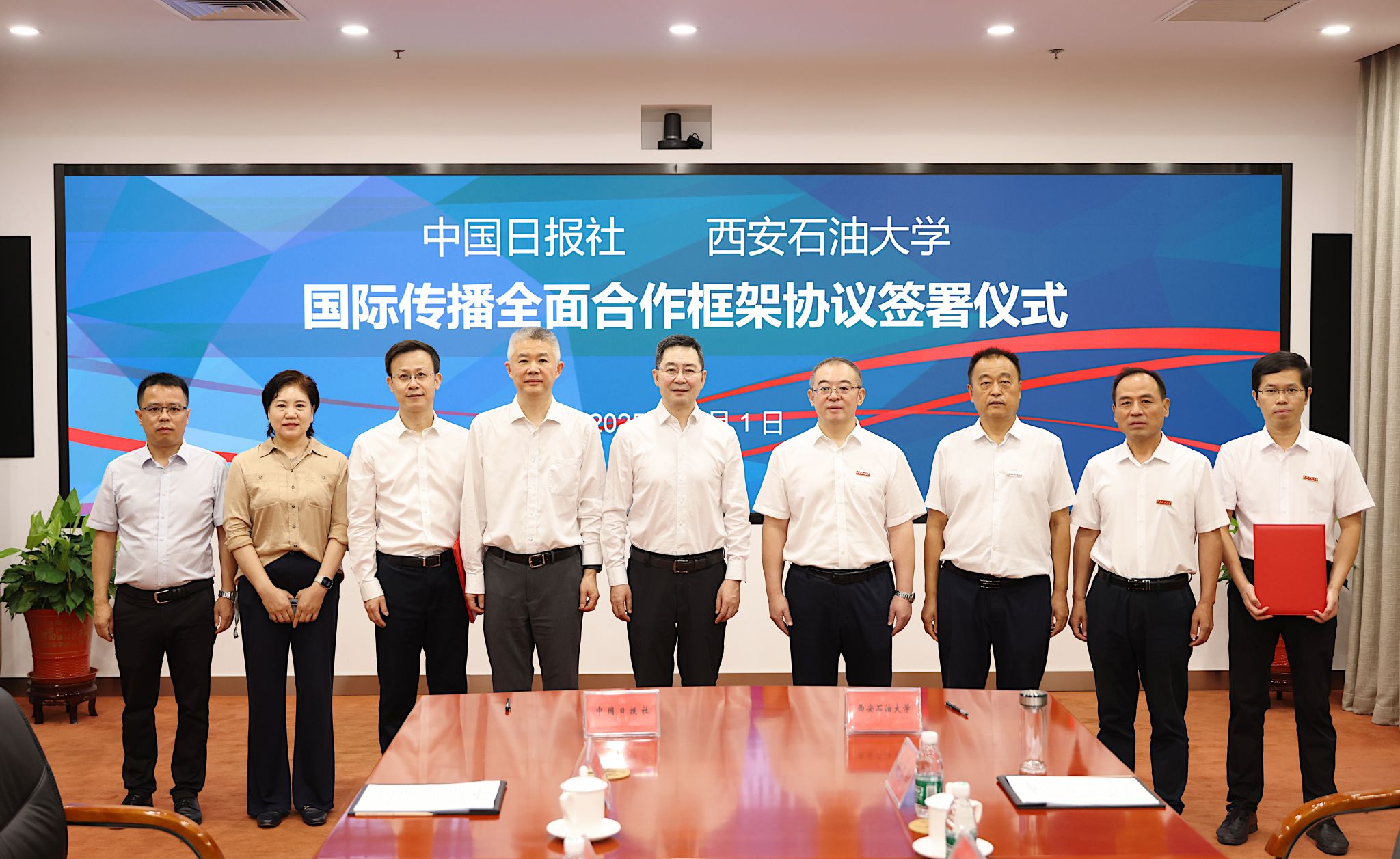 为深入贯彻落实习近平总书记关于国际传播工作的重要论述,加快构建学校多渠道、立体式对外传播格局,着力向国际社会讲好西石大故事和中国能源故事,7月1日,中国日报社与beat365官方网站在北京签署国际传播全面合作框架协议。中国日报社社长兼总编辑曲莹璞、beat365官方网站党委书记常江共同见证签约,beat365官方网站党委副书记程永清、中国日报社事业发展部主任龚铮铮代表双方签署协议。签约仪式由中国日报社副总编辑孙尚武主持。