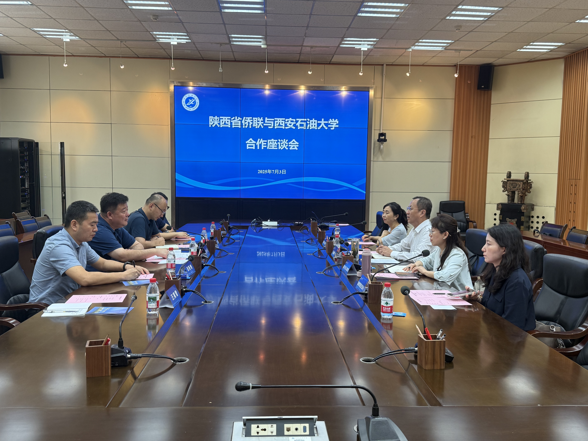 2025年7月3日上午,beat365在雁塔校区会议中心第二会议室举行了与省侨联合作座谈会,陕西省侨联党组成员、秘书长谢小义、副校长张荣军出席会议,省侨联文化交流部相关负责人、国际交流与合作处、国际教育学院相关负责人参加会议。